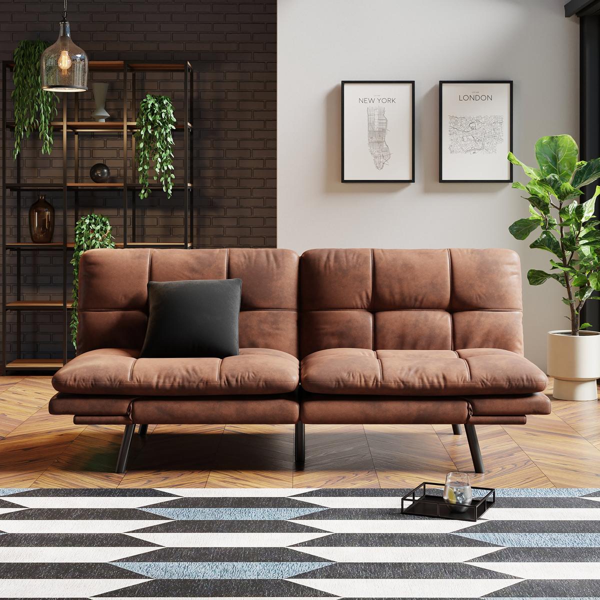 Harrison Quilted Faux Leather Clic Clac Sofa Bed Faux Leather Tan