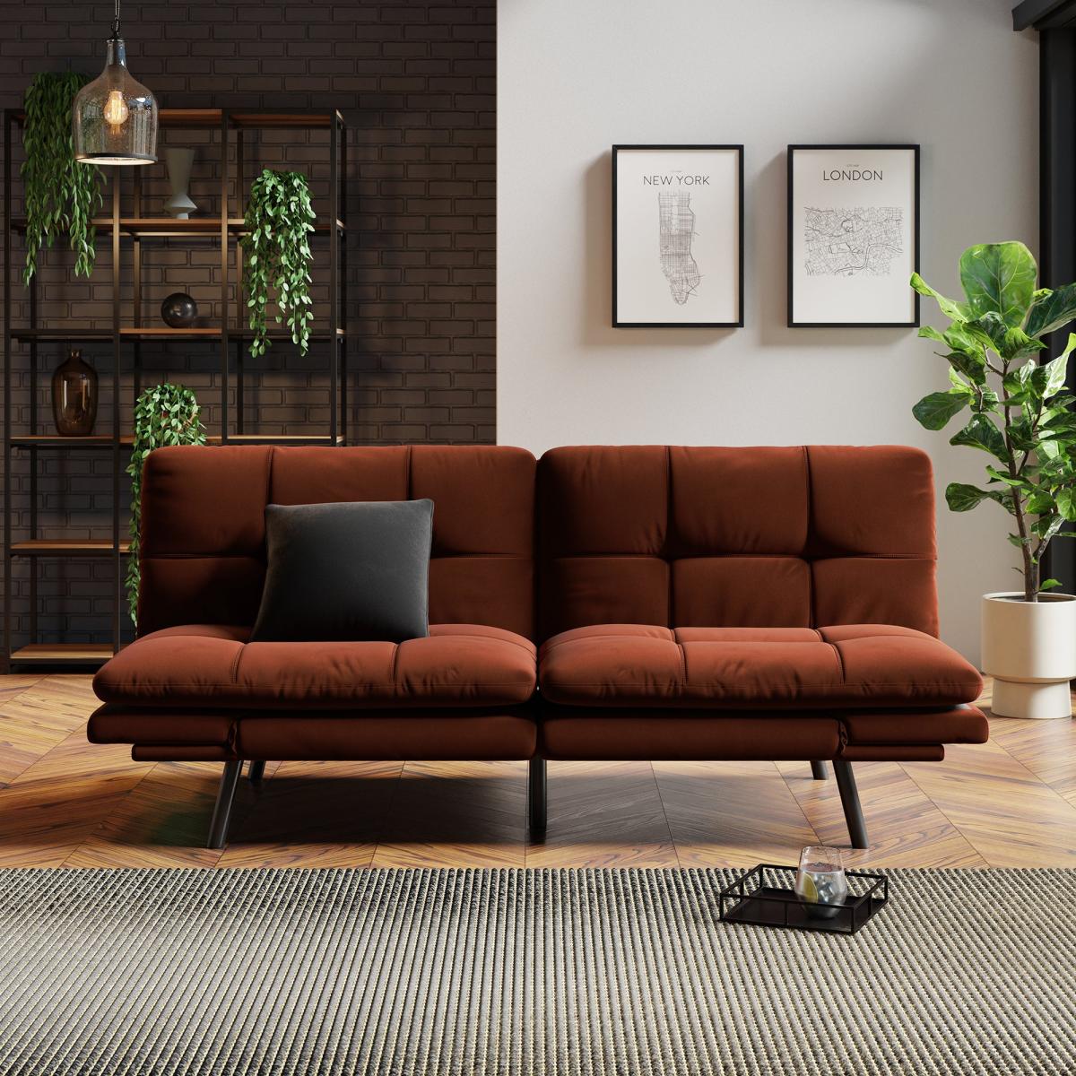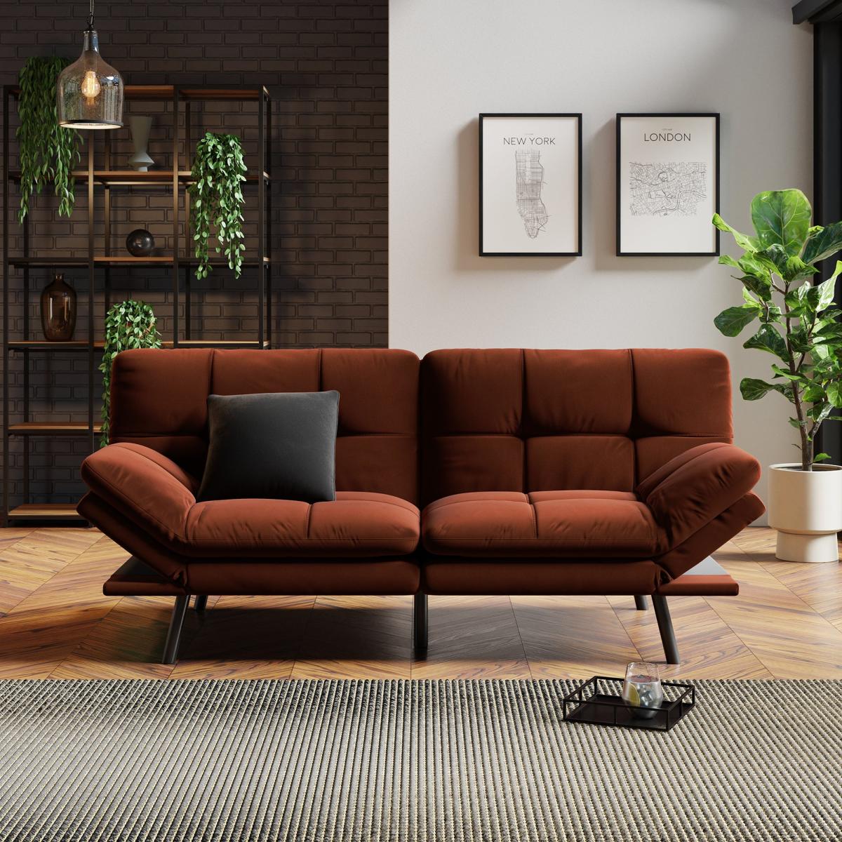 Harrison Quilted Velvet Clic Clac Sofa Bed Orange Umber