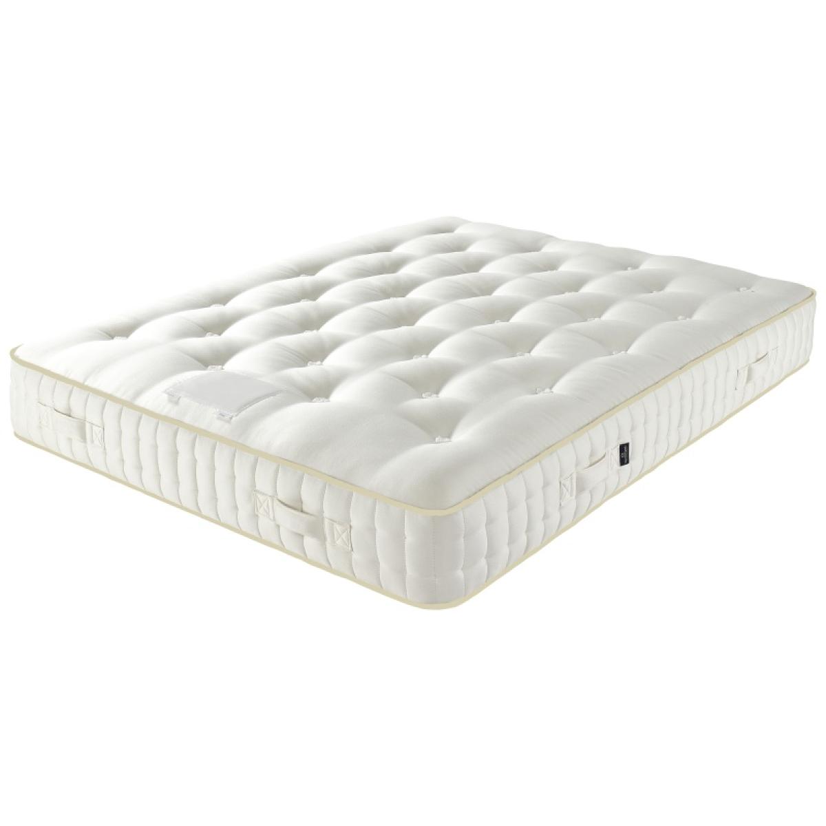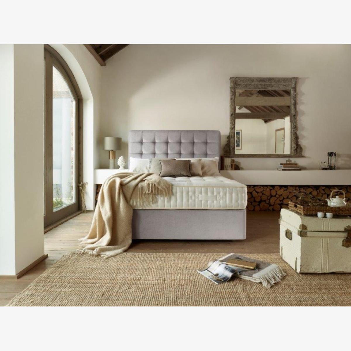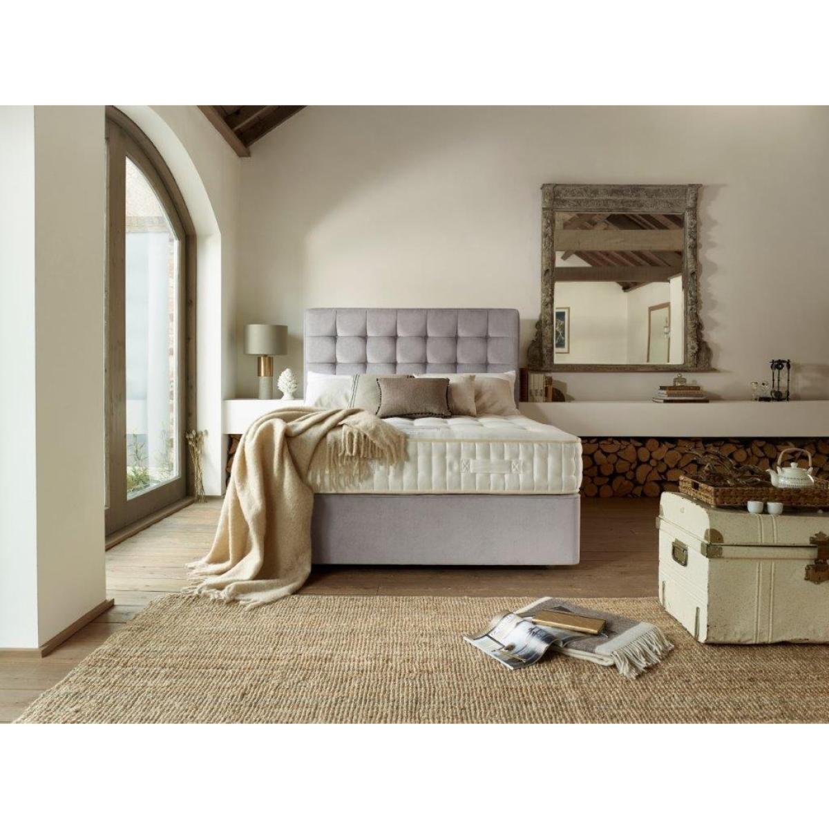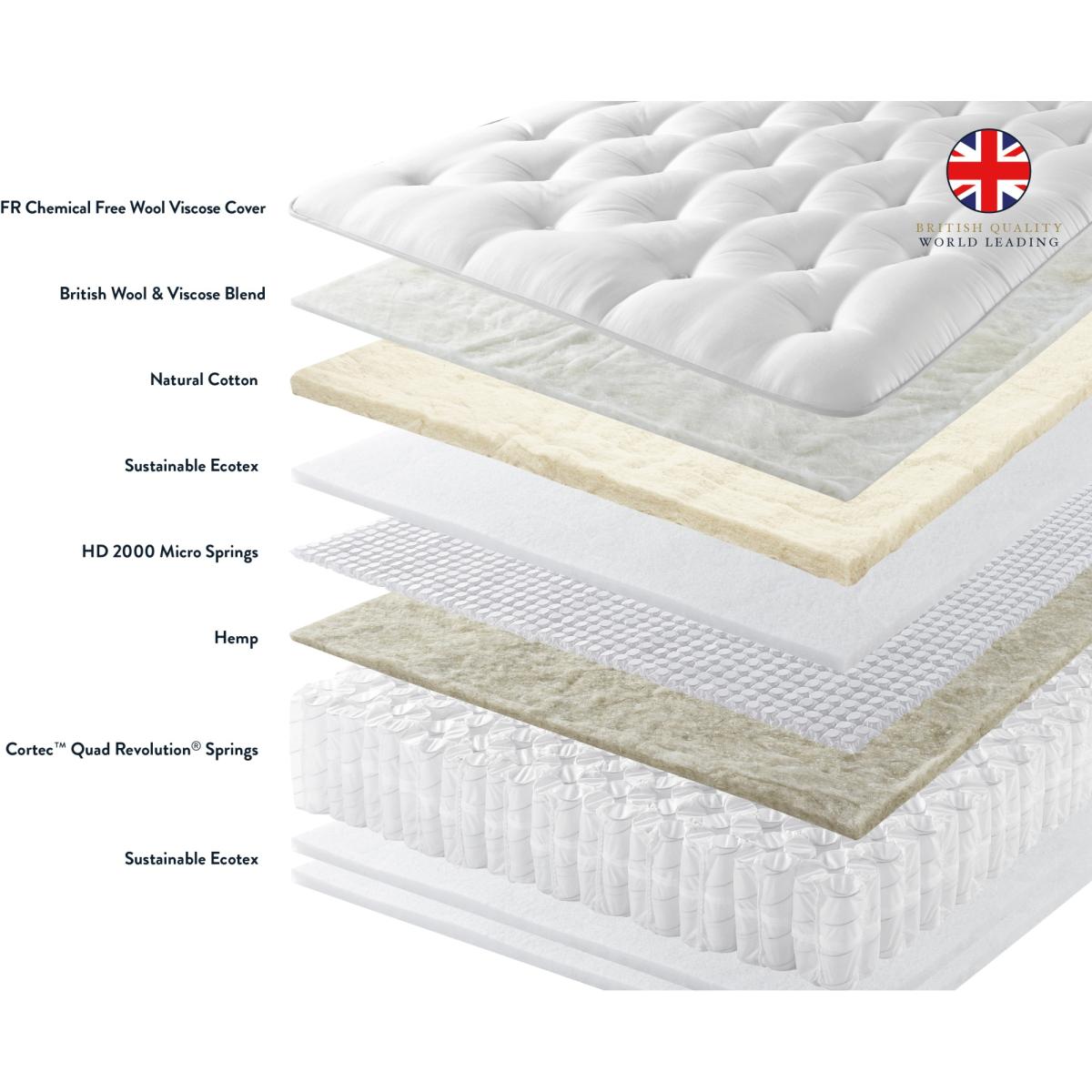 Please note, The headboard is not included with the divan set purchase. The base or frame pictured in the image may not be representative of the speciific base you require. Please contact us for more information, if needed. With layers of blended British wool and viscose, crisp cooling cotton, homegrown hemp and Sustainable Ecotex, the Harrison Spinks Allure Mattress & Divan Set is specifically designed for those who prefer an extra firm sleep surface. This mattress features 3,000 Cortec Quad Revolution and HD Micro Springs. With an in-house woven FR chemical free mattress cover and two rows of side stitching, this mattress is turn free for your convenience. Features: Mattress Tension Rating: Extra Firm Cortec™ Quad Revolution® Springs - Offers zoned support, adjusting to your body’s movements. HD 2000 Micro Springs - Provides additional targeted support and pressure relief. British Wool & Viscose Blend, Natural Cotton, Hemp, Sustainable Ecotex. FR Chemical Free Wool Viscose Cover. Turn-Free Convenience Handcrafted Side Stitching Available in a range of colours. Mattress Depth: 22cm Measurements: ( W x L) Small Single - 75cm x 190cm Single - 90cm x 190cm Small Double - 120cm x 190cm Double - 135cm x 190cm King - 150cm x 200cm Super King - 180cm x 200cm All screens vary in colour reproduction and whilst every effort has been made to display the colour as accurately as possible it is for guidance only.
