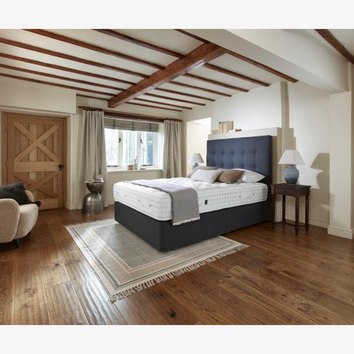 Please note, The headboard is not included with the divan set purchase. The base or frame pictured in the image may not be representative of the speciific base you require. Please contact us for more information, if needed. With layers of blended British wool and viscose, home-grown flax and crisp cooling Egyptian cotton. The Hollyhock has 10750 innovative springs; including 100% recyclable advanced Cortec Quad pocket springs and dual layers of pressure relieving HD 2500 micro springs. With an in-house woven FR chemical free mattress cover and three rows of side stitching, this Seasonal Turn mattress has a warming wool winter side and cooling cotton summer side. Cortec Quad pocket springs, HD 2500 micro springs, British wool and viscose blend, natural wool and flax blend, Egyptian cotton and flax blend. All Harrison Spinks mattresses can be partnered with either our deep bases, shallow bases or our design led slim bases. Each base is manufactured with wood from FSC certified forests, the bases are available with nine different leg options in a range of colours and styles. We have a range of over 50 different luxurious fabrics and colour options to ensure your headboard and base is tailored to your own individual style. Please Note: As this mattress has two sides for the winter and summer, it is recommended that you turn the mattress seasonally to ensure the longevity of the mattress. Mattress Depth: 29cm Measurements: ( W x L) Small Single - 75cm x 190cm Single - 90cm x 190cm Small Double - 120cm x 190cm Double - 135cm x 190cm King - 150cm x 200cm Super King - 180cm x 200cm All screens vary in colour reproduction and whilst every effort has been made to display the colour as accurately as possible it is for guidance only.