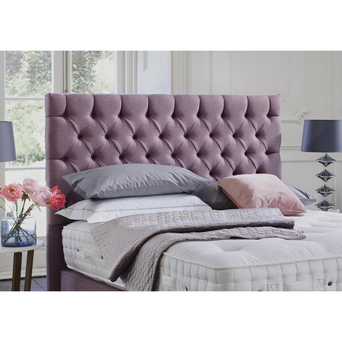 Yorkshire born and bred, the Harrison Spinks Yorkshire range of luxurious mattresses and divan sets are exclusive to Furniture Village and handcrafted to order. Every mattress is layered with 100% all-natural fillings that are either produced on Harrison Spinks’ own farm in Yorkshire or sourced locally, a commitment that means every bed is as environmentally-friendly as it is sumptuously comfortable. Patented higher-count spring systems with high-density pocket springs, made in Leeds, ensure that every mattress promises precisely personalised support and perfect spinal alignment. Pocket sprung divan bases with True Edge technology are beautifully upholstered in a range of fabrics, and feature a choice of optional storage drawer configurations. Pair yours with a Harrison Spinks handcrafted luxury headboard. Harrison Spinks is a family-owned company and has been making wonderful British beds since 1840. A Furniture Village exclusive, handcrafted in Yorkshire. Gorgeous contemporary design in a range of luxury fabrics. Complements Harrison Spinks Yorkshire divan beds. Upholstered by skilled craftspeople using traditional methods, the Harrison Spinks Linden floor standing headboard is a master class in elegance and style. This beautifully buttoned full-height headboard, handcrafted to order in Yorkshire, features luxurious cushioning and a stunning level of precise detail. Perfect for a more traditional style bedroom, it’s a look which also works in contemporary spaces thanks to its imposing proportions and modern square edges. And while this headboard is designed to partner the Harrison Spinks Yorkshire 13,500 divan base, rest assured it will affix easily to any of the divan bases in the Harrison Spinks Yorkshire collection using the attachments provided. A strutted version of this headboard is also available. The Harrison Spinks Linden floor standing headboard is a great British-made product and one of several Harrison Spinks headboards, exclusively available at Furniture Village. Please note. This Harrison Spinks headboard is designed to be attached to a Harrison Spinks Yorkshire divan base and may not attach successfully to divan bases from other manufacturers.