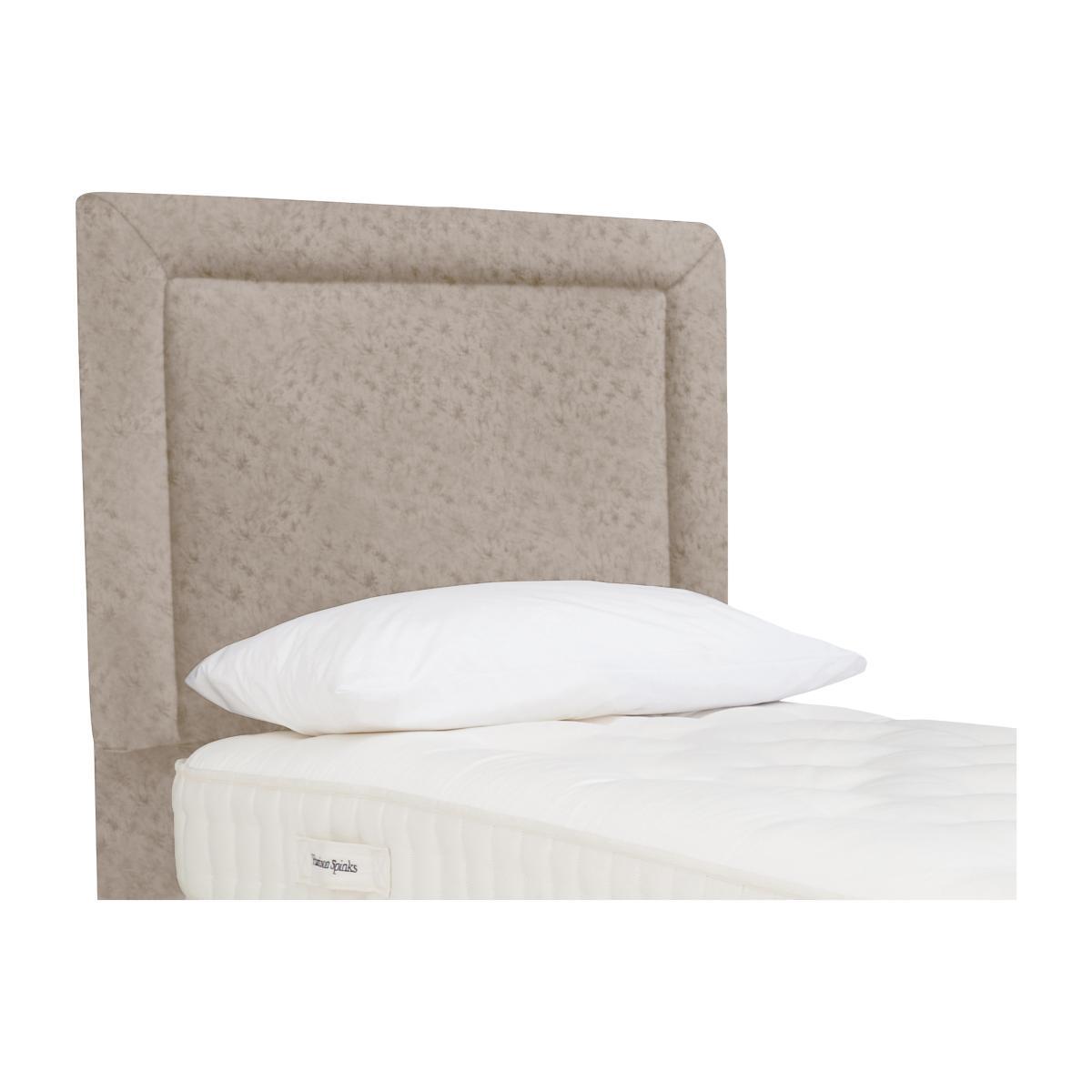 Yorkshire born and bred, the Harrison Spinks Pure Comfort range of luxurious mattresses and divan sets are exclusive to Furniture Village and handcrafted to order. Every mattress is layered with 100% all-natural fillings that are either produced on Harrison Spinks’ own farm or sourced locally, a commitment that means every bed is as environmentally-friendly as it is sumptuously comfortable. Patented higher-count, higher-density spring systems, made in Leeds, ensure that every mattress promises precisely personalised support and perfect spinal alignment. Pocket sprung divan bases with True Edge technology are beautifully upholstered in a range of fabrics, and feature traditional inset castors and a choice of optional storage drawer configurations. Pair yours with a Harrison Spinks handcrafted luxury headboard, available in three striking and sophisticated contemporary styles. Harrison Spinks is a family-owned company and has been making wonderful British beds since 1840. Simple, elegant and beautifully handcrafted, the Harrison Spinks Pure Comfort Oak floor standing headboard brings sophisticated contemporary style to any bedroom. This lovely headboard is upholstered from the very top all the way to the floor, and has a deeply cushioned headboard area that features a neat border with mitred corners. This headboard is designed to attach easily to any standard divan base and is available in a wide range of fabrics. Handmade in Yorkshire, the Harrison Spinks Pure Comfort Oak floor standing headboard is part of the Harrison Spinks Pure Comfort collection, a range of luxury mattresses, divan bases and headboards exclusively available at Furniture Village.
