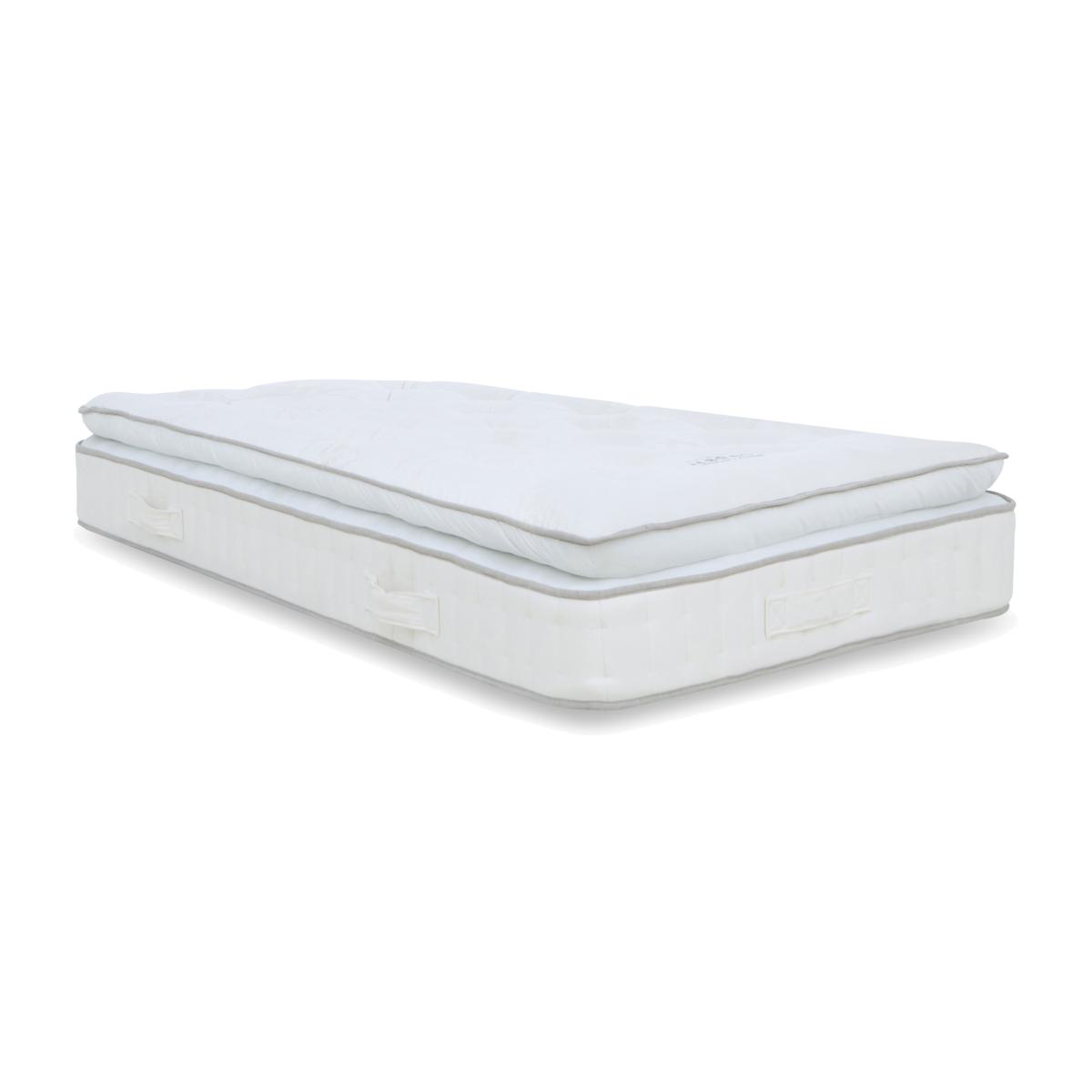 Sleep comes more naturally when your mattress is more natural. That’s the guiding philosophy behind our partnership with Harrison Spinks, master crafter of superior beds and mattresses. Our latest collaboration is the Pure collection. This suite of seven different mattresses puts the emphasis on pure, naturally cooling and responsibly sourced mattress fillings. These include British wool, hemp and flax grown on the Harrison Spinks Yorkshire farm, and even upcycled cashmere. Complemented by precisely engineered pocket spring systems and offering mattress tensions to perfectly suit every side, back and front sleeper, the Harrison Spinks Pure mattress collection promises better sleep in its purest form. Enjoy comfort that feels like a soothing embrace with our exclusive Harrison Spinks Pure Embrace mattress. Complete with a pillowtop, this premium mattress requires no turning. Why you'll love it A premium pillowtop mattress, the Harrison Spinks Pure Embrace mattress cocoons you in comfort. A no-turn mattress with 3,750 springs in king size for superior support and pressure relief. Features the award-winning Advanced CortecT M Quad pocket spring system. Designed for responsive support that adapts to your body to provide optimal spinal alignment. Plus 1,000 Posturfil pocket springs and a layer of 2,000 high-density micro springs. Springs work together to provide targeted pressure relief and plush-cushioned comfort. Cushioned with the most luxurious and sustainable naturally cooling and moisture-wicking fillings. Responsibly sourced and fully traceable British wool. Hemp and flax grown on the Harrison Spinks farm. Fire-retardant and chemical treatment-free wool-blend mattress cover is woven in-house. Hand-tufted. Finished with 2 rows of hand-side stitching for edge-to-edge support. Painstakingly handcrafted in Yorkshire. Made exclusively for Furniture Village. This pillowtop mattress is part of the Harrison Spinks Pure collection. What you need to know Mattress type: Pocket spring. Depth: 28 cm. Firmness: Available in medium and firm. King and super king sizes also available in dual tension. Springs: 3,750 pocket springs in king size, including high-density micro springs and Posturfil pocket springs. Pillowtop:Yes. Fillings: Wool, hemp and flax. Cover: Wool and viscose blend. Requires turning: No. Sizes:Single, small double, double, king and super king. Mattress care:Air for 4 hours before using to remove any odour. Allow at least 4 hours for springs to settle and for mattress to attain its full size. Indentations caused by settlement of fillings or body weight are normal and are not considered defects. If used on a slatted bed frame, the space between slats must be no wider than 7.5 cm. Spaces wider than this may cause excess dipping of the mattress and invalidate the guarantee. Always use a mattress protector. Rotate regularly. Item code: EMBRMT30R-001