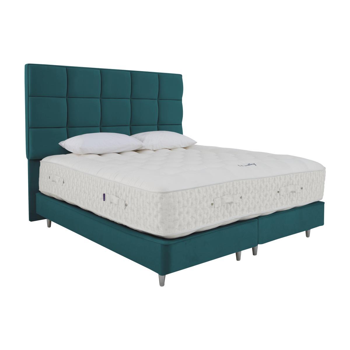 Headboard shown available separately. Get ready for top-of-the-range luxury. This divan set has 40,750 pocket springs in the mattress surrounded by all natural, luxury fillings, with 25,000 springs in the base. Why you’ll love it. Furniture Village’s highest spring count mattress. 40,750 pocket springs. High-end style. Extra deep, tufted and British made. Traditional hand side-stitching, tufting and tape edging. Abundant all-natural fillings include Herdwick wool, mohair, silk, cashmere, kapok, alpaca and angora. Kapok fibres are buoyant, resilient and resistant to water. Alpaca is soft, durable and lanolin-free, which makes it hypoallergenic. Sprung divan in wide choice of fabrics and colours. Handcrafted to order. Exclusive to Furniture Village. What you need to know. Mattress type: Pocket spring. Depth: 36 cm. Firmness: Regular and firmer feel. Split tension available in king and super king sizes. Springs: 40,750 high-density pocket springs in king size. Fillings: Herdwick wool, Egyptian cotton, hemp, flax, mohair, silk, cashmere, kapok, alpaca and angora wool. Mattress cover: 100% wool, chemical-free tick fabric. Six rows of side stitching. Divan base: 29cm deep. Sprung, true edge. 25,000 springs. Sizes: Zip and link super king and king. Super king, king, double, small double, single. Requires turning: Yes. Mattress care: Air for 4 hours before using to remove any odour. Allow at least 4 hours for springs to settle and for mattress to attain its full size. Indentations caused by settlement of fillings or body weight are normal and are not considered defects. If used on a slatted bed frame, slats must be no more than 7 cm apart. Rotate regularly.