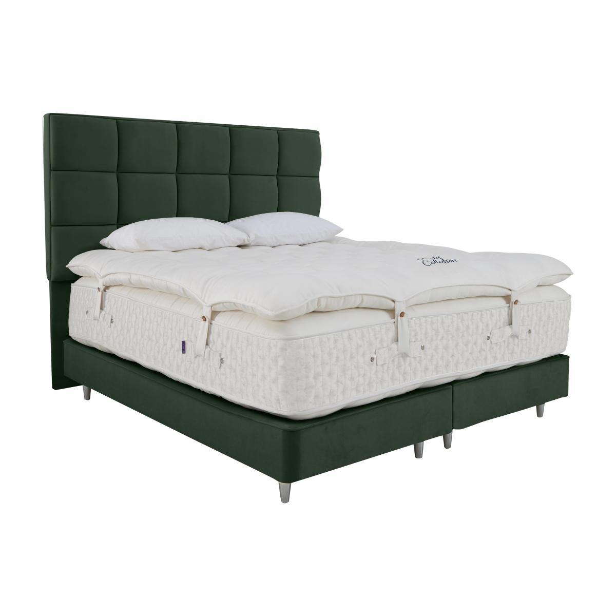 The ultimate in luxury. The mattress has an incredible 40,750 pocket springs plus a sumptuous sprung mattress topper. Even the divan base is sprung. A Furniture Village exclusive. Why you’ll love it. Furniture Village’s highest spring count mattress. 40,750 pocket springs. luxurious mattress topper with an additional 10,000 springs inside. High-end style. Extra deep, tufted and British made. Traditional hand side-stitching, tufting and tape edging. Abundant all-natural fillings include Herdwick wool, mohair, silk, cashmere, kapok, alpaca and angora. Kapok fibres are buoyant, resilient and resistant to water. Alpaca is soft, durable and lanolin-free, which makes it hypoallergenic. Sprung divan in wide choice of fabrics and colours. Handcrafted to order. Exclusive to Furniture Village. What you need to know. Mattress type: Pocket spring. Depth: 36 cm. Firmness: Regular and firmer feel. Split tension available in king and super king sizes. Springs: 40,750 high-density pocket springs in king size. Fillings: Herdwick wool, Egyptian cotton, hemp, flax, mohair, silk and cashmere. Mattress cover: 100% wool, chemical-free tick fabric. Six rows of side stitching. Topper: 10,000 responsive micro-springs with Egyptian cotton, alpaca and Kapok. Divan base: 29cm deep. Sprung, true edge. 25,000 springs. Sizes: Zip and link super king and king. Super king, king, double, small double, single. Requires turning: Yes. Mattress care: Air for 4 hours before using to remove any odour. Allow at least 4 hours for springs to settle and for mattress to attain its full size. Indentations caused by settlement of fillings or body weight are normal and are not considered defects. If used on a slatted bed frame, slats must be no more than 7 cm apart. Rotate regularly.