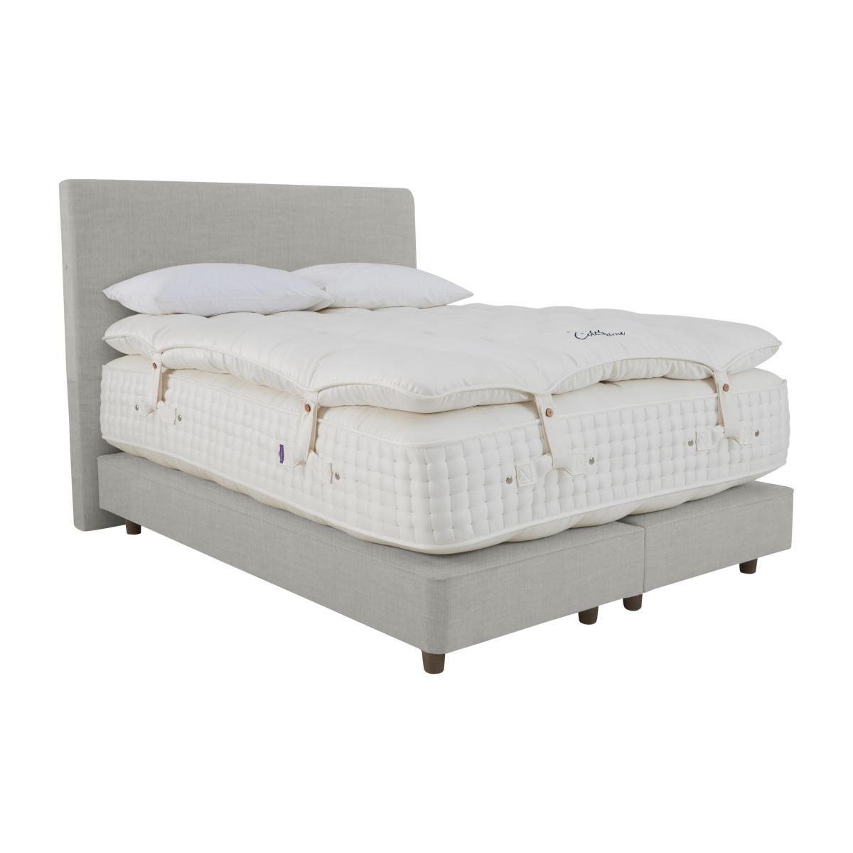 Handcrafted luxury with sustainable, all natural materials. This mattress has 34,750 pocket springs, and a sumptuous sprung topper. Exclusive to Furniture Village from Harrison Spinks. Why you’ll love it. Fabulously comfortable, with 34,750 pocket springs in the mattress. Luxurious mattress topper which includes 10,000 springs. High-end style. Extra deep, tufted and British made. Traditional hand side-stitching, tufting and tape edging. Luxury, all-natural fillings include Herdwick wool, Egyptian cotton, mohair, silk and cashmere. Silk is strong and lightweight while cashmere is soft and sumptuous. The mattress topper has 10,000 responsive micro-springs layered with Egyptian cotton, alpaca and Kapok. Sprung divan in wide choice of fabrics and colours. Handcrafted to order. Exclusive to Furniture Village. What you need to know. Mattress type: Pocket spring. Depth: 32 cm. Firmness: Regular and firmer feel. Split tension available in king and super king sizes. Springs: 34,750 high-density pocket springs in king size. Fillings: Herdwick wool, Egyptian cotton, hemp, flax, mohair, silk and cashmere. Mattress cover: 100% wool, chemical-free tick fabric. Six rows of side stitching. Topper: 10,000 responsive micro-springs with Egyptian cotton, alpaca and Kapok. Divan base: 29cm deep. Sprung, true edge. 25,000 springs. Sizes: Zip and link super king and king. Super king, king, double, small double, single. Requires turning: Yes. Mattress care: Air for 4 hours before using to remove any odour. Allow at least 4 hours for springs to settle and for mattress to attain its full size. Indentations caused by settlement of fillings or body weight are normal and are not considered defects. If used on a slatted bed frame, slats must be no more than 7 cm apart. Rotate regularly.