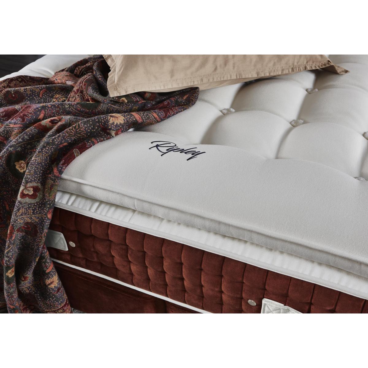 Headboard shown available separately. New from Harrison Spinks and exclusively available at Furniture Village. 40cm deep, pocket sprung mattress with all natural fillings, sustainable credentials and inbuilt mattress topper. Why you’ll love it. Fabulously comfortable, with 29,750 pocket springs in the mattress. High-end style. Extra deep, tufted and British made. Traditional hand side-stitching, tufting and tape edging. Luxury, all-natural fillings include Herdwick wool, Egyptian cotton and mohair. Herdwick wool is fresh and cooling with a natural springiness. Sprung divan in wide choice of fabrics and colours. Also available with a mattress topper. Handcrafted to order. Exclusive to Furniture Village. What you need to know. Mattress type: Pocket spring, with integral mattress topper. Depth: 40 cm. Firmness: Regular and firmer feel. Split tension available in king and super king sizes. Springs: 29,750 high-density pocket springs in king size. Fillings: Herdwick wool, Egyptian cotton, mohair. Mattress cover: 100% wool, chemical-free tick fabric. Divan base: 29cm deep. Sprung, true edge. 25,000 springs. Sizes: Zip and link super king and king. Super king, king, double, small double, single. Requires turning: No. Mattress care: Air for 4 hours before using to remove any odour. Allow at least 4 hours for springs to settle and for mattress to attain its full size. Indentations caused by settlement of fillings or body weight are normal and are not considered defects. If used on a slatted bed frame, slats must be no more than 7 cm apart. Rotate regularly.