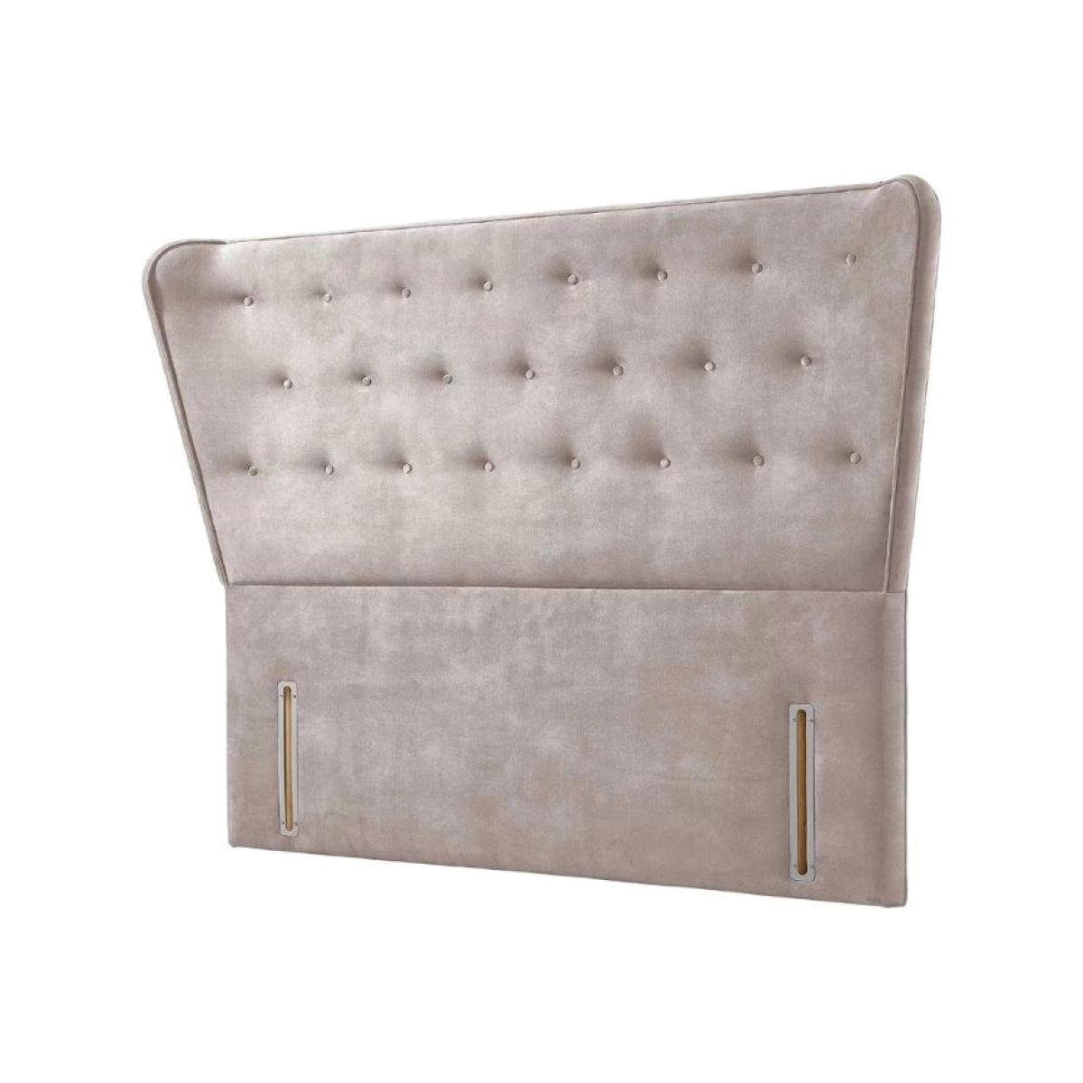 A floor standing headboard with a buttoned design with a rounded wings, creating an extravagant look for your Harrison Spinks divan set. Our skilled craftsmen and women assemble and upholster each luxurious headboard. Choose from a variety of design led styles that can be upholstered in a ray of sumptuous textures and colours. Available in a multitude of styles from strut, deep, floating to those with detachable legs for ease of delivery. Height:130cmAll screens vary in colour reproduction and whilst every effort has been made to display the colour as accurately as possible it is for guidance only