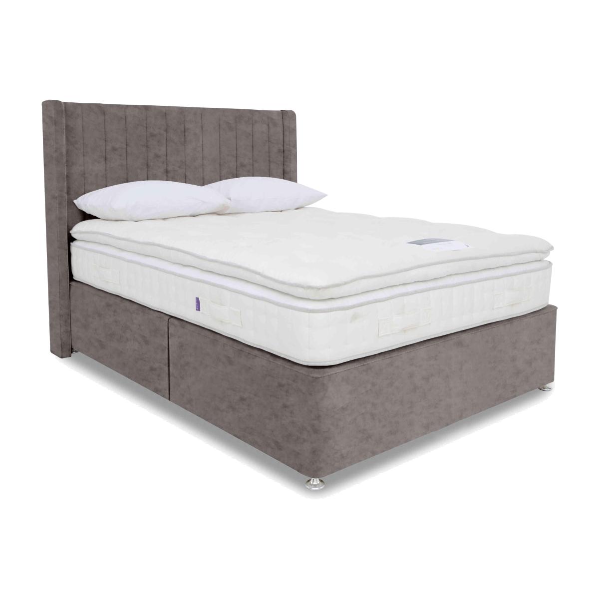 Yorkshire born and bred, Harrison Spinks Yorkshire mattresses and divan sets are exclusive to Furniture Village and handcrafted to order. Every mattress is layered with all-natural fillings that are either produced on Harrison Spinks’ own farm in Yorkshire or sourced locally, a commitment that means every bed is as environmentally-friendly as it is comfortable. High-density pocket springs along with thousands of cushioning micro springs ensure that every mattress promises both personalised support and sumptuous luxury. Sprung firm-edge divan bases are beautifully upholstered in a range of fabrics, and feature optional storage drawer configurations. Harrison Spinks is a family-owned company and has been making wonderful British beds since 1840. Fabulous handcrafted pillow top mattress meets beautifully upholstered divan base with built-in storage in this superb Harrison Spinks divan set. Handcrafted and only at Furniture Village. Why you'll love it A sumptuous Harrison Spinks divan set complete with cushioning pillow top mattress. Each handcrafted pocket spring mattress is made to order in Yorkshire. With a unique combination of supportive pocket springs and cushioning micro springs. Filled with springy British wool, hypoallergenic Yorkshire hemp and breathable cotton. Micro spring-filled pillow top provides extra comfort with pressure relief. Finished with traditional tufting and hand side stitching. A more sustainable choice – this mattress is fully recyclable. Made without foam, glue and chemical fire-retardants for a more natural night’s sleep. Choice of firmness – regular and firmer. The pillow top adds a layer of luxurious softness. Sprung base with optional storage drawers or end-opening ottoman. In a wide choice of upholstery fabrics. In single, small double, double, king and super king sizes. Made in Yorkshire exclusively for Furniture Village. This divan set is part of the Harrison Spinks Yorkshire 10. K collection. What you need to know Headboard is an optional extra. Mattress type: Pocket spring. Depth: 28 cm. Firmness:Regular and firmer. Springs: 10,000 in king size – 1,000 pocket springs and 9,000 pillow top micro springs. Pillow top: Yes – with wool, cotton and micro springs. Fillings: British wool, Yorkshire hemp, cotton. Cover: Wool blend. Requires turning: No. Base type:Pocket sprung with firm edge support and optional drawer or ottoman storage. Sizes: Single, small double, double, king and super king. Mattress care:Air for 4 hours before using to remove any odour. Allow at least 4 hours for springs to settle and for mattress to attain its full size. Indentations caused by settlement of fillings or body weight are normal and are not considered defects. If used on a slatted bed frame, the space between slats must be no wider than 7.5 cm. Spaces wider than this may cause excess dipping of the mattress and invalidate the guarantee. Always use a mattress protector. Rotate regularly. Divan base care: Clean upholstery weekly using a soft brush or vacuum with the curtain attachment. Professional cleaning advised for oil- and grease-based stains. Some fabrics can show wear on areas of more use or in direct sunlight.