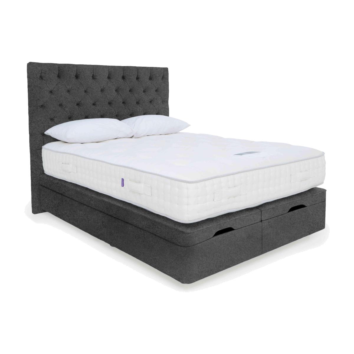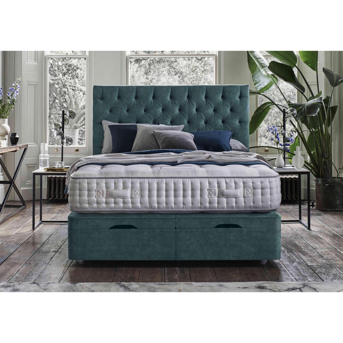 Yorkshire born and bred, Harrison Spinks Yorkshire mattresses and divan sets are exclusive to Furniture Village and handcrafted to order. Every mattress is layered with all-natural fillings that are either produced on Harrison Spinks’ own farm in Yorkshire or sourced locally, a commitment that means every bed is as environmentally-friendly as it is comfortable. High-density pocket springs along with thousands of cushioning micro springs ensure that every mattress promises both personalised support and sumptuous luxury. Sprung firm-edge divan bases are beautifully upholstered in a range of fabrics, and feature optional storage drawer configurations. Harrison Spinks is a family-owned company and has been making wonderful British beds since 1840. Spacious storage meets true comfort in this superb Harrison Spinks divan set. The end-opening ottoman base is a practical addition to any bedroom and the mattress is the very essence of luxury. Why you'll love it This luxurious Harrison Spinks end ottoman divan set is designed to cocoon you in comfort. Each handcrafted pocket spring mattress is made to order in Yorkshire. With a unique combination of supportive pocket springs and cushioning micro springs. Filled with springy wool, hypoallergenic hemp, breathable cotton and moisture-absorbing flax. Finished with traditional tufting and hand side stitching. A more sustainable choice – this mattress is fully recyclable. Made without foam, glue and chemical fire-retardants for a more natural night’s sleep. In a choice of firmness – regular and firmer. Sprung base with end-opening ottoman storage. In a wide choice of upholstery fabrics. In double, king and super king sizes. Made in Yorkshire exclusively for Furniture Village. This end ottoman divan set is part of the Harrison Spinks Yorkshire 15. K collection. What you need to know Headboard is an optional extra. Mattress type: Pocket spring. Depth: 25 cm. Firmness:Regular and firmer. Springs: 15,000 in king size – 1,000 pocket springs and 14,000 micro springs. Pillow top: No. Fillings: British wool, Yorkshire hemp, cotton, flax. Cover: Wool blend. Requires turning: Yes. Base type: Pocket sprung with firm edge support and ottoman storage. Sizes: Double, king and super king. Mattress care:Air for 4 hours before using to remove any odour. Allow at least 4 hours for springs to settle and for mattress to attain its full size. Indentations caused by settlement of fillings or body weight are normal and are not considered defects. If used on a slatted bed frame, the space between slats must be no wider than 7.5 cm. Spaces wider than this may cause excess dipping of the mattress and invalidate the guarantee. Always use a mattress protector. Rotate regularly. Divan base care: Clean upholstery weekly using a soft brush or vacuum with the curtain attachment. Professional cleaning advised for oil- and grease-based stains. Some fabrics can show wear on areas of more use or in direct sunlight.