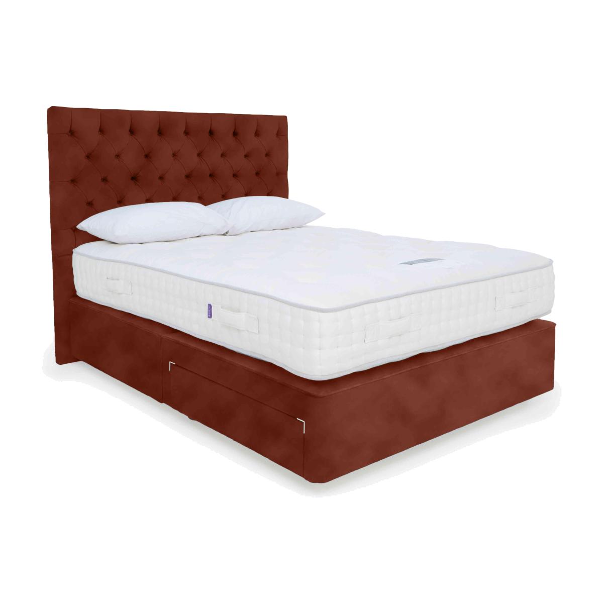 Yorkshire born and bred, Harrison Spinks Yorkshire mattresses and divan sets are exclusive to Furniture Village and handcrafted to order. Every mattress is layered with all-natural fillings that are either produced on Harrison Spinks’ own farm in Yorkshire or sourced locally, a commitment that means every bed is as environmentally-friendly as it is comfortable. High-density pocket springs along with thousands of cushioning micro springs ensure that every mattress promises both personalised support and sumptuous luxury. Sprung firm-edge divan bases are beautifully upholstered in a range of fabrics, and feature optional storage drawer configurations. Harrison Spinks is a family-owned company and has been making wonderful British beds since 1840. From the incredible handcrafted pocket spring mattress to the beautiful tailored base, this divan set is the essence of luxury comfort. And with a wide choice of storage options, it’s a practical choice too. Why you'll love it This luxurious Harrison Spinks divan set is designed to cocoon you in comfort. Each handcrafted pocket spring mattress is made to order in Yorkshire. With a unique combination of supportive pocket springs and cushioning micro springs. Filled with springy wool, hypoallergenic hemp, breathable cotton and moisture-absorbing flax. Finished with traditional tufting and hand side stitching. A more sustainable choice – this mattress is fully recyclable. Made without foam, glue and chemical fire-retardants for a more natural night’s sleep. In a choice of firmness – regular and firmer. Sprung base with optional storage drawers. In a wide choice of upholstery fabrics. In single, small double, double, king and super king sizes. Made in Yorkshire exclusively for Furniture Village. This divan set is part of the Harrison Spinks Yorkshire 15. K collection. What you need to know Headboard is an optional extra. Mattress type: Pocket spring. Depth: 25 cm. Firmness:Regular and firmer. Springs: 15,000 in king size – 1,000 pocket springs and 14,000 micro springs. Pillow top: No. Fillings: British wool, Yorkshire hemp, cotton, flax. Cover: Wool blend. Requires turning: Yes. Base type: Pocket sprung with firm edge support and optional drawer storage. Sizes: Single, small double, double, king and super king. Mattress care:Air for 4 hours before using to remove any odour. Allow at least 4 hours for springs to settle and for mattress to attain its full size. Indentations caused by settlement of fillings or body weight are normal and are not considered defects. If used on a slatted bed frame, the space between slats must be no wider than 7.5 cm. Spaces wider than this may cause excess dipping of the mattress and invalidate the guarantee. Always use a mattress protector. Rotate regularly. Divan base care: Clean upholstery weekly using a soft brush or vacuum with the curtain attachment. Professional cleaning advised for oil- and grease-based stains. Some fabrics can show wear on areas of more use or in direct sunlight.
