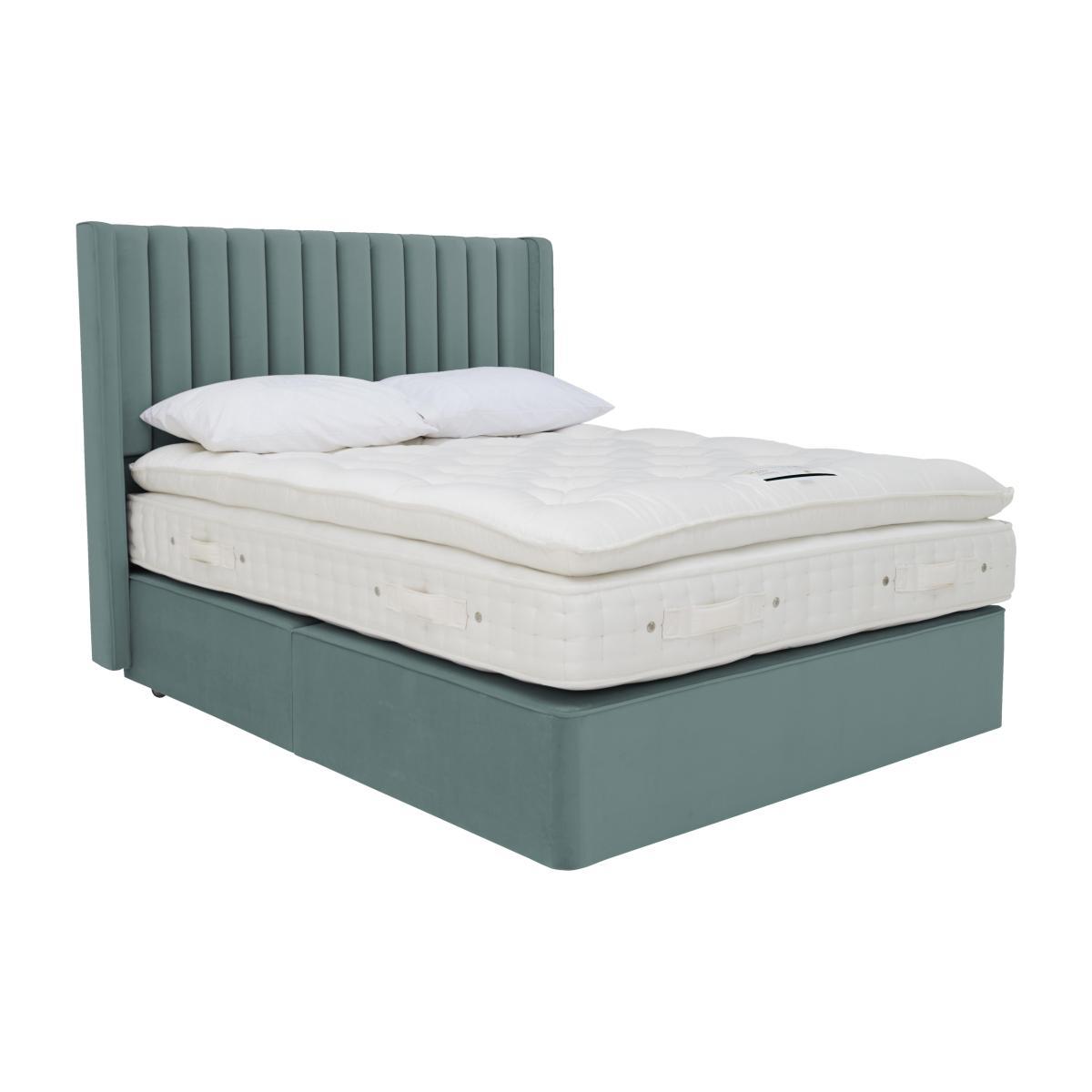 Yorkshire born and bred, the Harrison Spinks Yorkshire range of luxurious mattresses and divan sets are exclusive to Furniture Village and handcrafted to order. Every mattress is layered with 100% all-natural fillings that are either produced on Harrison Spinks’ own farm in Yorkshire or sourced locally, a commitment that means every bed is as environmentally-friendly as it is sumptuously comfortable. Patented higher-count spring systems with high-density pocket springs, made in Leeds, ensure that every mattress promises precisely personalised support and perfect spinal alignment. Pocket sprung divan bases with True Edge technology are beautifully upholstered in a range of fabrics, and feature a choice of optional storage drawer configurations. Pair yours with a Harrison Spinks handcrafted luxury headboard. Harrison Spinks is a family-owned company and has been making wonderful British beds since 1840. Sumptuous handcrafted Harrison Spinks divan set, only at Furniture Village. Pillow top mattress with 16,500 pocket springs in king size plus hemp, flax, Yorkshire wool, cotton and mohair. Sprung firm edge divan base has optional drawer storage. Headboard is an optional extra. Handcrafted in Yorkshire, the luxurious Harrison Spinks Yorkshire 16,500 divan set includes a 25 cm mattress that has 16,500 high-density pocket springs and mini pocket springs in king size, arranged in four layers for more responsive support. It’s available in medium and firm tension, and a split tension option in king and super king sizes. All-natural fillings come from or near to Harrison Spinks’ own Yorkshire farm, and include mildew-resistant hemp and flax; springy Yorkshire wool; soft cotton; and luxurious mohair. Handcrafted using time-honoured methods of hand side stitching, tufting and tape edging, this mattress is finished with a chemical-free cover that’s fire retardant. With True Edge technology for maximum full-width support, the divan base has optional drawer storage, 2,500 pocket springs in king size for support, and is upholstered in a wide selection of fabrics and colours. Made to order, the Harrison Spinks Yorkshire 16,500 divan set is part of the Harrison Spinks Yorkshire 16,500 collection. With traditional fluting and wings, the Harrison Spinks Willow floor standing headboard is the perfect partner. Product images are representative. Find out more. Did you know?. Your mattress may have a faint odour which will dissipate after airing. The mattress should be aired for four hours after delivery to freshen and remove any aroma from storage. It may take time for your mattress to attain its full size once the springs have settled to the correct position. This is due to the mattress being upright during transit. Settlement of fillings and indentations caused by body weight compressing the fillings are natural and not considered defects. This can be minimised by regular rotating.