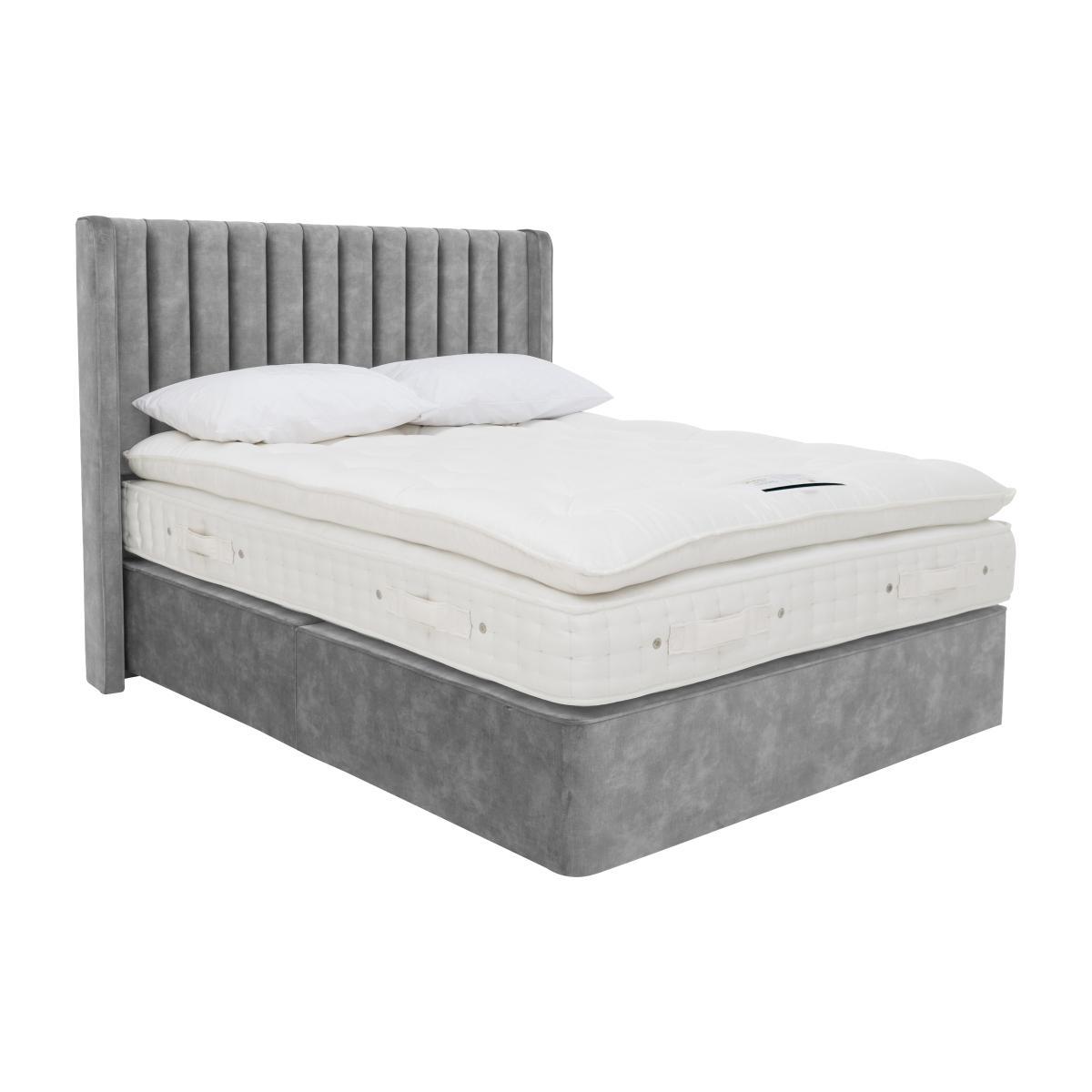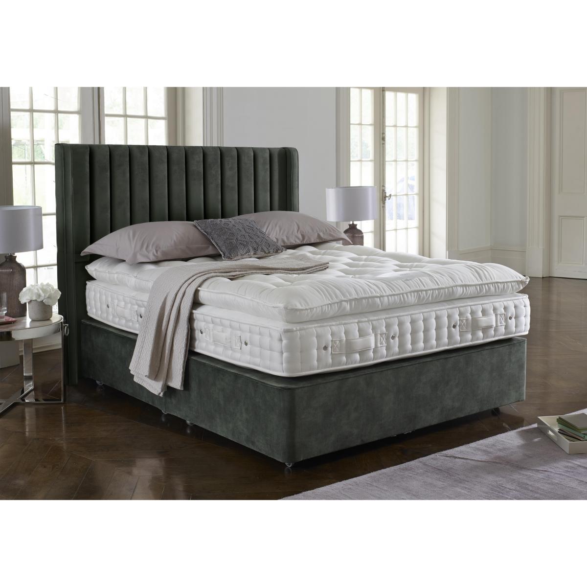 Yorkshire born and bred, the Harrison Spinks Yorkshire range of luxurious mattresses and divan sets are exclusive to Furniture Village and handcrafted to order. Every mattress is layered with 100% all-natural fillings that are either produced on Harrison Spinks’ own farm in Yorkshire or sourced locally, a commitment that means every bed is as environmentally-friendly as it is sumptuously comfortable. Patented higher-count spring systems with high-density pocket springs, made in Leeds, ensure that every mattress promises precisely personalised support and perfect spinal alignment. Pocket sprung divan bases with True Edge technology are beautifully upholstered in a range of fabrics, and feature a choice of optional storage drawer configurations. Pair yours with a Harrison Spinks handcrafted luxury headboard. Harrison Spinks is a family-owned company and has been making wonderful British beds since 1840. Sumptuous handcrafted Harrison Spinks divan set, only at Furniture Village. Pillow top mattress with 16,500 pocket springs in king size plus hemp, flax, Yorkshire wool, cotton and mohair. Sprung firm edge divan base has optional drawer storage. Headboard is an optional extra. Handcrafted in Yorkshire, the luxurious Harrison Spinks Yorkshire 16,500 divan set includes a 25 cm mattress that has 16,500 high-density pocket springs and mini pocket springs in king size, arranged in four layers for more responsive support. It’s available in medium and firm tension, and a split tension option in king and super king sizes. All-natural fillings come from or near to Harrison Spinks’ own Yorkshire farm, and include mildew-resistant hemp and flax; springy Yorkshire wool; soft cotton; and luxurious mohair. Handcrafted using time-honoured methods of hand side stitching, tufting and tape edging, this mattress is finished with a chemical-free cover that’s fire retardant. With True Edge technology for maximum full-width support, the divan base has optional drawer storage, 2,500 pocket springs in king size for support, and is upholstered in a wide selection of fabrics and colours. Made to order, the Harrison Spinks Yorkshire 16,500 divan set is part of the Harrison Spinks Yorkshire 16,500 collection. With traditional fluting and wings, the Harrison Spinks Willow floor standing headboard is the perfect partner. Product images are representative. Find out more. Did you know?. Your mattress may have a faint odour which will dissipate after airing. The mattress should be aired for four hours after delivery to freshen and remove any aroma from storage. It may take time for your mattress to attain its full size once the springs have settled to the correct position. This is due to the mattress being upright during transit. Settlement of fillings and indentations caused by body weight compressing the fillings are natural and not considered defects. This can be minimised by regular rotating.