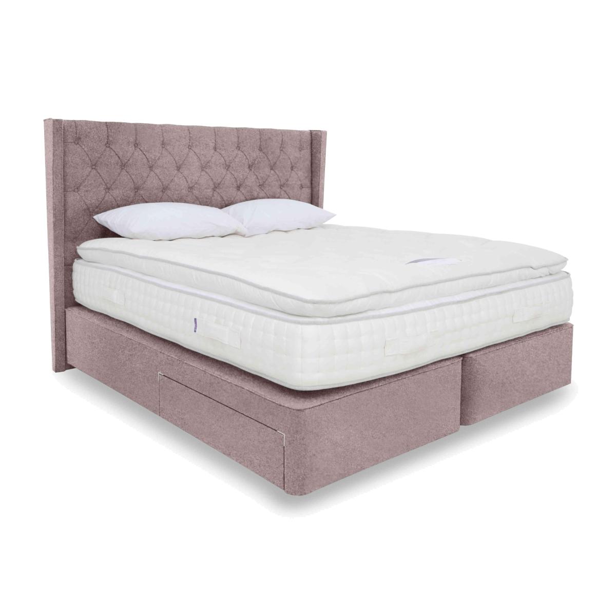 Yorkshire born and bred, Harrison Spinks Yorkshire mattresses and divan sets are exclusive to Furniture Village and handcrafted to order. Every mattress is layered with all-natural fillings that are either produced on Harrison Spinks’ own farm in Yorkshire or sourced locally, a commitment that means every bed is as environmentally-friendly as it is comfortable. High-density pocket springs along with thousands of cushioning micro springs ensure that every mattress promises both personalised support and sumptuous luxury. Sprung firm-edge divan bases are beautifully upholstered in a range of fabrics, and feature optional storage drawer configurations. Harrison Spinks is a family-owned company and has been making wonderful British beds since 1840. We’ve paired this sumptuous Harrison Spinks pillow top mattress with a stylish storage divan base. Select from a wide choice of upholstery fabrics, add drawer or ottoman storage and relax. Why you'll love it The most sumptuous Harrison Spinks pillow top comfort in a divan set. Each handcrafted pocket spring mattress is made to order in Yorkshire. With a unique combination of supportive pocket springs and cushioning micro springs. Filled with springy wool, absorbent hemp, breathable cotton, absorbent flax and Egyptian cotton. Luxurious micro spring-filled pillow top provides extra comfort with pressure relief. Finished with traditional tufting and hand side stitching. A more sustainable choice – this mattress is fully recyclable. Made without foam, glue and chemical fire-retardants for a more natural night’s sleep. Choice of firmness – regular and firmer. The pillow top adds a layer of luxurious softness. Sprung base with optional storage drawers or end-opening ottoman. In a wide choice of upholstery fabrics. In single, small double, double, king and super king sizes. Made in Yorkshire exclusively for Furniture Village. This pillow top divan set is part of the Harrison Spinks Yorkshire 20,000 collection. What you need to know Headboard is an optional extra. Mattress type: Pocket spring. Depth: 33 cm. Firmness:Regular and firmer. Springs: 20,000 in king size – 8,500 pocket springs and 11,500 in the topper. Pillow top: Yes – with wool, cotton, Egyptian cotton and micro springs. Fillings: British wool, Yorkshire hemp, cotton, flax, Egyptian cotton. Cover: Wool blend. Requires turning: No. Base type:Pocket sprung with firm edge support and optional drawer or ottoman storage. Sizes: Single, small double, double, king and super king. Mattress care:Air for 4 hours before using to remove any odour. Allow at least 4 hours for springs to settle and for mattress to attain its full size. Indentations caused by settlement of fillings or body weight are normal and are not considered defects. If used on a slatted bed frame, the space between slats must be no wider than 7.5 cm. Spaces wider than this may cause excess dipping of the mattress and invalidate the guarantee. Always use a mattress protector. Rotate regularly. Divan base care: Clean upholstery weekly using a soft brush or vacuum with the curtain attachment. Professional cleaning advised for oil- and grease-based stains. Some fabrics can show wear on areas of more use or in direct sunlight.