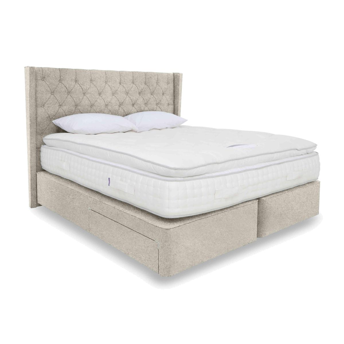 Yorkshire born and bred, Harrison Spinks Yorkshire mattresses and divan sets are exclusive to Furniture Village and handcrafted to order. Every mattress is layered with all-natural fillings that are either produced on Harrison Spinks’ own farm in Yorkshire or sourced locally, a commitment that means every bed is as environmentally-friendly as it is comfortable. High-density pocket springs along with thousands of cushioning micro springs ensure that every mattress promises both personalised support and sumptuous luxury. Sprung firm-edge divan bases are beautifully upholstered in a range of fabrics, and feature optional storage drawer configurations. Harrison Spinks is a family-owned company and has been making wonderful British beds since 1840. We’ve paired this sumptuous Harrison Spinks pillow top mattress with a stylish storage divan base. Select from a wide choice of upholstery fabrics, add drawer or ottoman storage and relax. Why you'll love it The most sumptuous Harrison Spinks pillow top comfort in a divan set. Each handcrafted pocket spring mattress is made to order in Yorkshire. With a unique combination of supportive pocket springs and cushioning micro springs. Filled with springy wool, absorbent hemp, breathable cotton, absorbent flax and Egyptian cotton. Luxurious micro spring-filled pillow top provides extra comfort with pressure relief. Finished with traditional tufting and hand side stitching. A more sustainable choice – this mattress is fully recyclable. Made without foam, glue and chemical fire-retardants for a more natural night’s sleep. Choice of firmness – regular and firmer. The pillow top adds a layer of luxurious softness. Sprung base with optional storage drawers or end-opening ottoman. In a wide choice of upholstery fabrics. In single, small double, double, king and super king sizes. Made in Yorkshire exclusively for Furniture Village. This pillow top divan set is part of the Harrison Spinks Yorkshire 20,000 collection. What you need to know Headboard is an optional extra. Mattress type: Pocket spring. Depth: 33 cm. Firmness:Regular and firmer. Springs: 20,000 in king size – 8,500 pocket springs and 11,500 in the topper. Pillow top: Yes – with wool, cotton, Egyptian cotton and micro springs. Fillings: British wool, Yorkshire hemp, cotton, flax, Egyptian cotton. Cover: Wool blend. Requires turning: No. Base type:Pocket sprung with firm edge support and optional drawer or ottoman storage. Sizes: Single, small double, double, king and super king. Mattress care:Air for 4 hours before using to remove any odour. Allow at least 4 hours for springs to settle and for mattress to attain its full size. Indentations caused by settlement of fillings or body weight are normal and are not considered defects. If used on a slatted bed frame, the space between slats must be no wider than 7.5 cm. Spaces wider than this may cause excess dipping of the mattress and invalidate the guarantee. Always use a mattress protector. Rotate regularly. Divan base care: Clean upholstery weekly using a soft brush or vacuum with the curtain attachment. Professional cleaning advised for oil- and grease-based stains. Some fabrics can show wear on areas of more use or in direct sunlight.