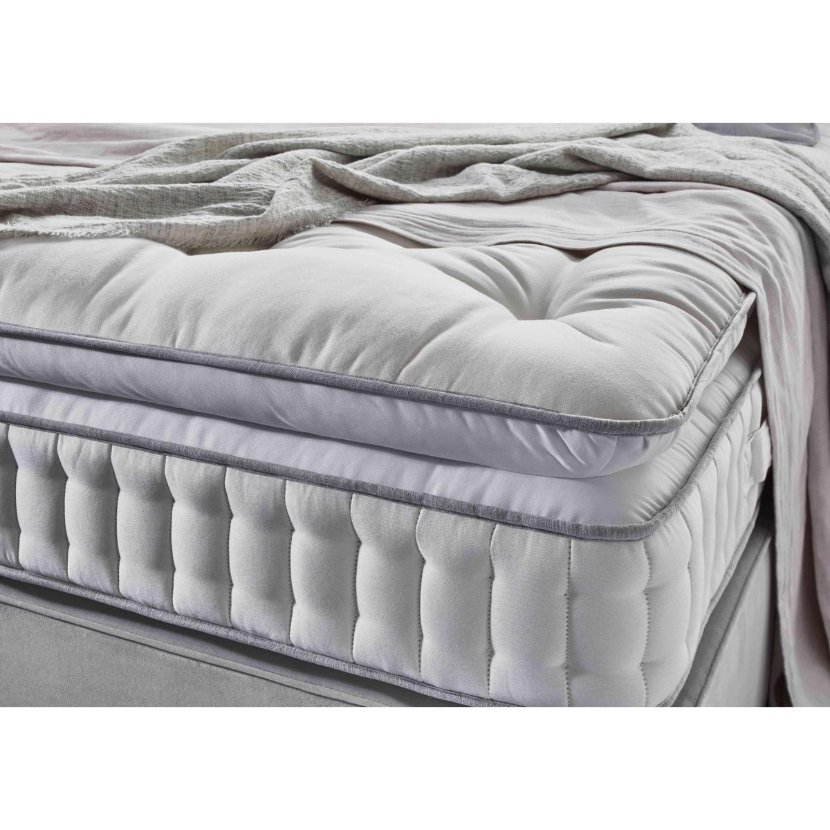Yorkshire born and bred, Harrison Spinks Yorkshire mattresses and divan sets are exclusive to Furniture Village and handcrafted to order. Every mattress is layered with all-natural fillings that are either produced on Harrison Spinks’ own farm in Yorkshire or sourced locally, a commitment that means every bed is as environmentally-friendly as it is comfortable. High-density pocket springs along with thousands of cushioning micro springs ensure that every mattress promises both personalised support and sumptuous luxury. Sprung firm-edge divan bases are beautifully upholstered in a range of fabrics, and feature optional storage drawer configurations. Harrison Spinks is a family-owned company and has been making wonderful British beds since 1840. Choose the Harrison Spinks 5. K divan set and enjoy a handcrafted all-natural pillow top pocket spring mattress plus a divan base with optional built-in storage. Why you'll love it This pillow top divan set represents true luxury at a great-value price. With a no-turn pillow top mattress with 5,000 pocket springs in king size. The sumptuous pillow top is layered with micro springs. Mattress and pillow top are filled with springy wool and hypoallergenic hemp. All wool is ethically sourced from traceable British farms. Hemp is grown on Harrison Spinks’ own farm. Filled, tufted and side stitched by hand. Made without foam, glue and chemical fire-retardants for a more natural night’s sleep. In a choice of firmness – regular and firmer. Sprung base on castors with optional built-in storage drawers. Offered in a wide choice of upholstery fabrics. Handcrafted in Yorkshire exclusively for Furniture Village. This pillow top divan set is part of the Harrison Spinks Yorkshire 5. K collection. What you need to know Headboard is an optional extra. Mattress type: Pocket spring. Depth: 30 cm. Firmness:Regular and firmer. Springs: 5,000 in king size – 1,000 pocket springs and 4,000 micro springs. Pillow top:Yes. Fillings: British wool, Yorkshire hemp. Cover: Wool and viscose. Requires turning: No. Base type: Pocket sprung with 1000 springs in king size. Optional drawer storage. Sizes: Single, small double, double, king and super king. Mattress care:Air for 4 hours before using to remove any odour. Allow at least 4 hours for springs to settle and for mattress to attain its full size. Indentations caused by settlement of fillings or body weight are normal and are not considered defects. If used on a slatted bed frame, the space between slats must be no wider than 7.5 cm. Spaces wider than this may cause excess dipping of the mattress and invalidate the guarantee. Always use a mattress protector. Rotate regularly. Divan base care: Clean upholstery weekly using a soft brush or vacuum with the curtain attachment. Professional cleaning advised for oil- and grease-based stains. Some fabrics can show wear on areas of more use or in direct sunlight.