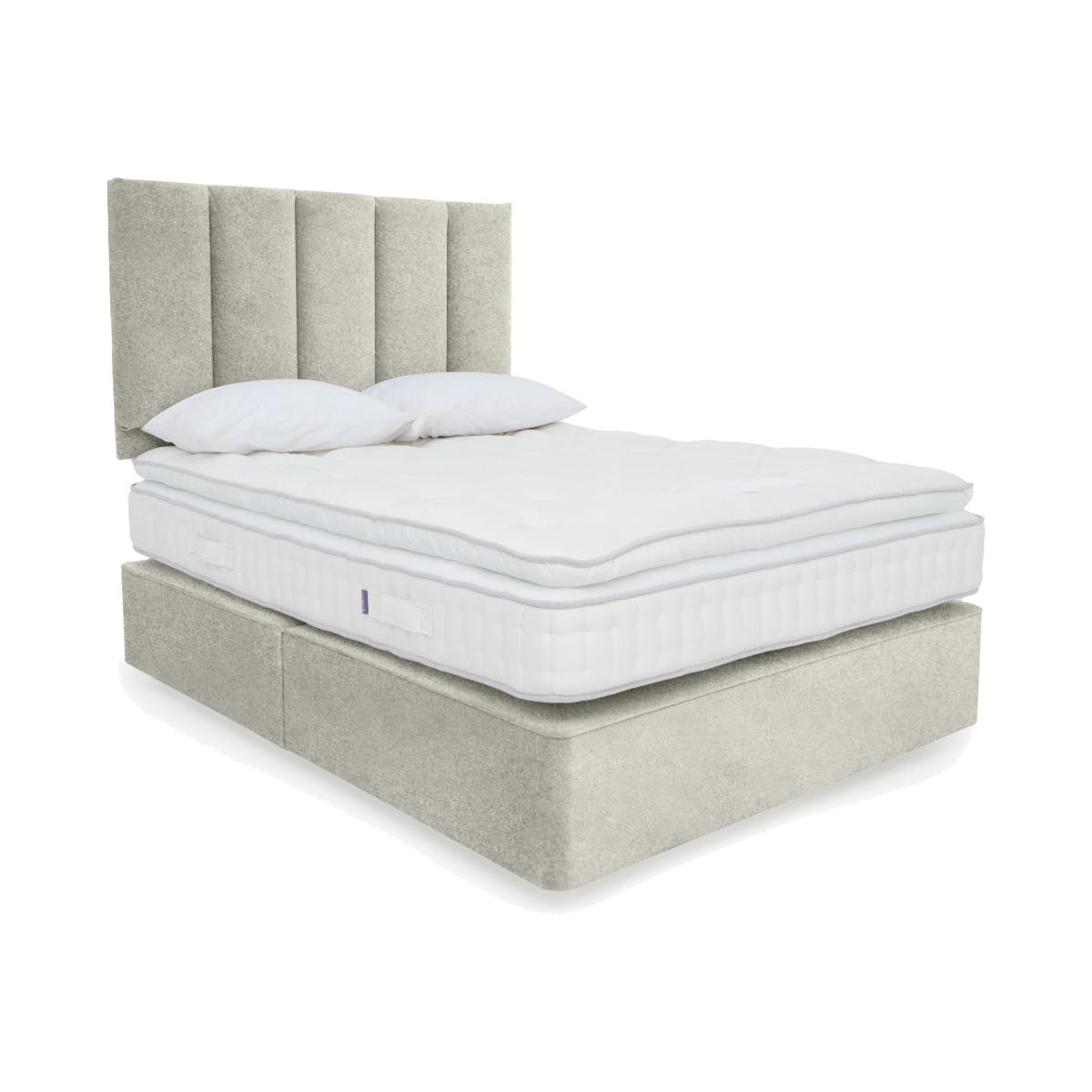 Yorkshire born and bred, Harrison Spinks Yorkshire mattresses and divan sets are exclusive to Furniture Village and handcrafted to order. Every mattress is layered with all-natural fillings that are either produced on Harrison Spinks’ own farm in Yorkshire or sourced locally, a commitment that means every bed is as environmentally-friendly as it is comfortable. High-density pocket springs along with thousands of cushioning micro springs ensure that every mattress promises both personalised support and sumptuous luxury. Sprung firm-edge divan bases are beautifully upholstered in a range of fabrics, and feature optional storage drawer configurations. Harrison Spinks is a family-owned company and has been making wonderful British beds since 1840. Choose the Harrison Spinks 5. K divan set and enjoy a handcrafted all-natural pillow top pocket spring mattress plus a divan base with optional built-in storage. Why you'll love it This pillow top divan set represents true luxury at a great-value price. With a no-turn pillow top mattress with 5,000 pocket springs in king size. The sumptuous pillow top is layered with micro springs. Mattress and pillow top are filled with springy wool and hypoallergenic hemp. All wool is ethically sourced from traceable British farms. Hemp is grown on Harrison Spinks’ own farm. Filled, tufted and side stitched by hand. Made without foam, glue and chemical fire-retardants for a more natural night’s sleep. In a choice of firmness – regular and firmer. Sprung base on castors with optional built-in storage drawers. Offered in a wide choice of upholstery fabrics. Handcrafted in Yorkshire exclusively for Furniture Village. This pillow top divan set is part of the Harrison Spinks Yorkshire 5. K collection. What you need to know Headboard is an optional extra. Mattress type: Pocket spring. Depth: 30 cm. Firmness:Regular and firmer. Springs: 5,000 in king size – 1,000 pocket springs and 4,000 micro springs. Pillow top:Yes. Fillings: British wool, Yorkshire hemp. Cover: Wool and viscose. Requires turning: No. Base type: Pocket sprung with 1000 springs in king size. Optional drawer storage. Sizes: Single, small double, double, king and super king. Mattress care:Air for 4 hours before using to remove any odour. Allow at least 4 hours for springs to settle and for mattress to attain its full size. Indentations caused by settlement of fillings or body weight are normal and are not considered defects. If used on a slatted bed frame, the space between slats must be no wider than 7.5 cm. Spaces wider than this may cause excess dipping of the mattress and invalidate the guarantee. Always use a mattress protector. Rotate regularly. Divan base care: Clean upholstery weekly using a soft brush or vacuum with the curtain attachment. Professional cleaning advised for oil- and grease-based stains. Some fabrics can show wear on areas of more use or in direct sunlight.