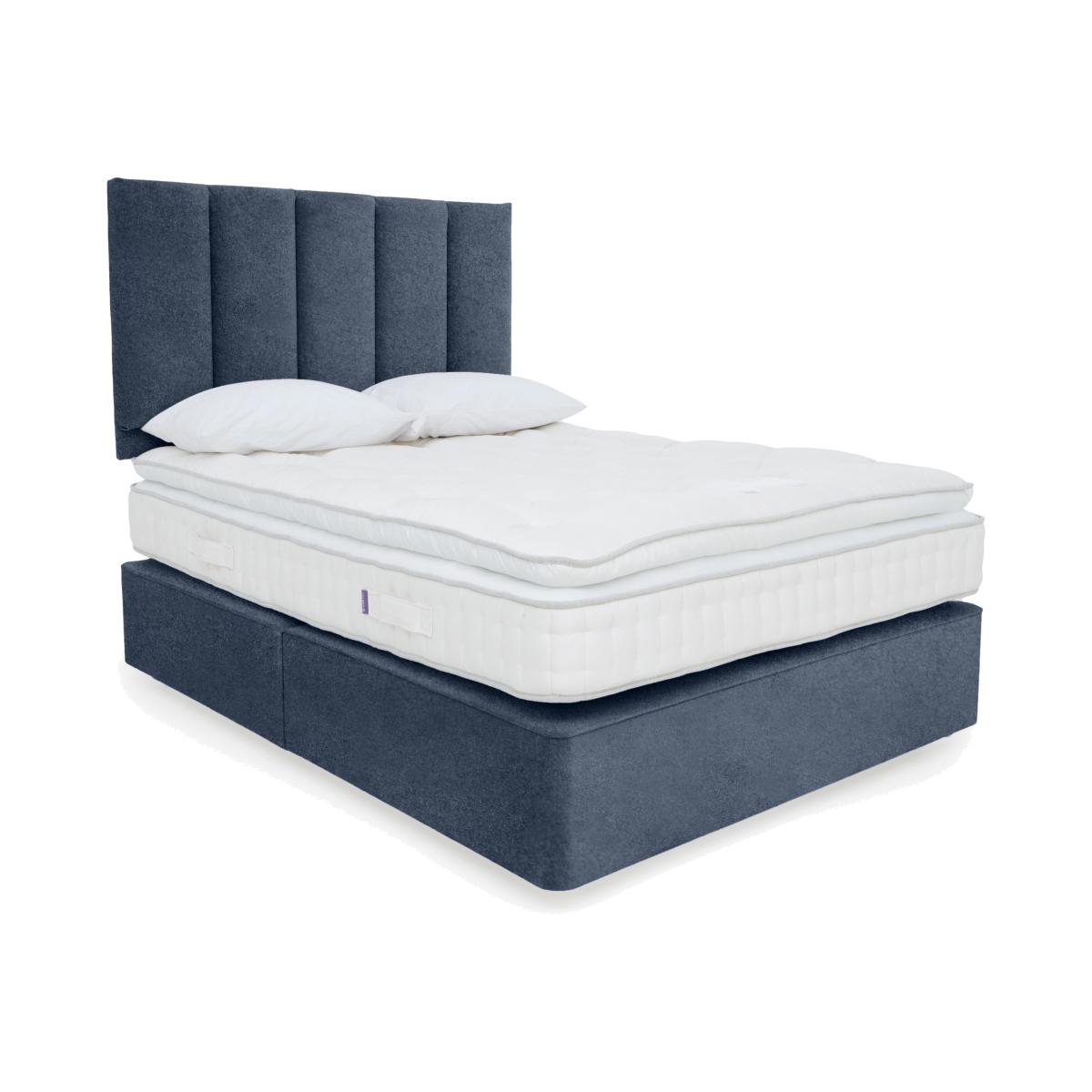 Yorkshire born and bred, Harrison Spinks Yorkshire mattresses and divan sets are exclusive to Furniture Village and handcrafted to order. Every mattress is layered with all-natural fillings that are either produced on Harrison Spinks’ own farm in Yorkshire or sourced locally, a commitment that means every bed is as environmentally-friendly as it is comfortable. High-density pocket springs along with thousands of cushioning micro springs ensure that every mattress promises both personalised support and sumptuous luxury. Sprung firm-edge divan bases are beautifully upholstered in a range of fabrics, and feature optional storage drawer configurations. Harrison Spinks is a family-owned company and has been making wonderful British beds since 1840. Choose the Harrison Spinks 5. K divan set and enjoy a handcrafted all-natural pillow top pocket spring mattress plus a divan base with optional built-in storage. Why you'll love it This pillow top divan set represents true luxury at a great-value price. With a no-turn pillow top mattress with 5,000 pocket springs in king size. The sumptuous pillow top is layered with micro springs. Mattress and pillow top are filled with springy wool and hypoallergenic hemp. All wool is ethically sourced from traceable British farms. Hemp is grown on Harrison Spinks’ own farm. Filled, tufted and side stitched by hand. Made without foam, glue and chemical fire-retardants for a more natural night’s sleep. In a choice of firmness – regular and firmer. Sprung base on castors with optional built-in storage drawers. Offered in a wide choice of upholstery fabrics. Handcrafted in Yorkshire exclusively for Furniture Village. This pillow top divan set is part of the Harrison Spinks Yorkshire 5. K collection. What you need to know Headboard is an optional extra. Mattress type: Pocket spring. Depth: 30 cm. Firmness:Regular and firmer. Springs: 5,000 in king size – 1,000 pocket springs and 4,000 micro springs. Pillow top:Yes. Fillings: British wool, Yorkshire hemp. Cover: Wool and viscose. Requires turning: No. Base type: Pocket sprung with 1000 springs in king size. Optional drawer storage. Sizes: Single, small double, double, king and super king. Mattress care:Air for 4 hours before using to remove any odour. Allow at least 4 hours for springs to settle and for mattress to attain its full size. Indentations caused by settlement of fillings or body weight are normal and are not considered defects. If used on a slatted bed frame, the space between slats must be no wider than 7.5 cm. Spaces wider than this may cause excess dipping of the mattress and invalidate the guarantee. Always use a mattress protector. Rotate regularly. Divan base care: Clean upholstery weekly using a soft brush or vacuum with the curtain attachment. Professional cleaning advised for oil- and grease-based stains. Some fabrics can show wear on areas of more use or in direct sunlight.