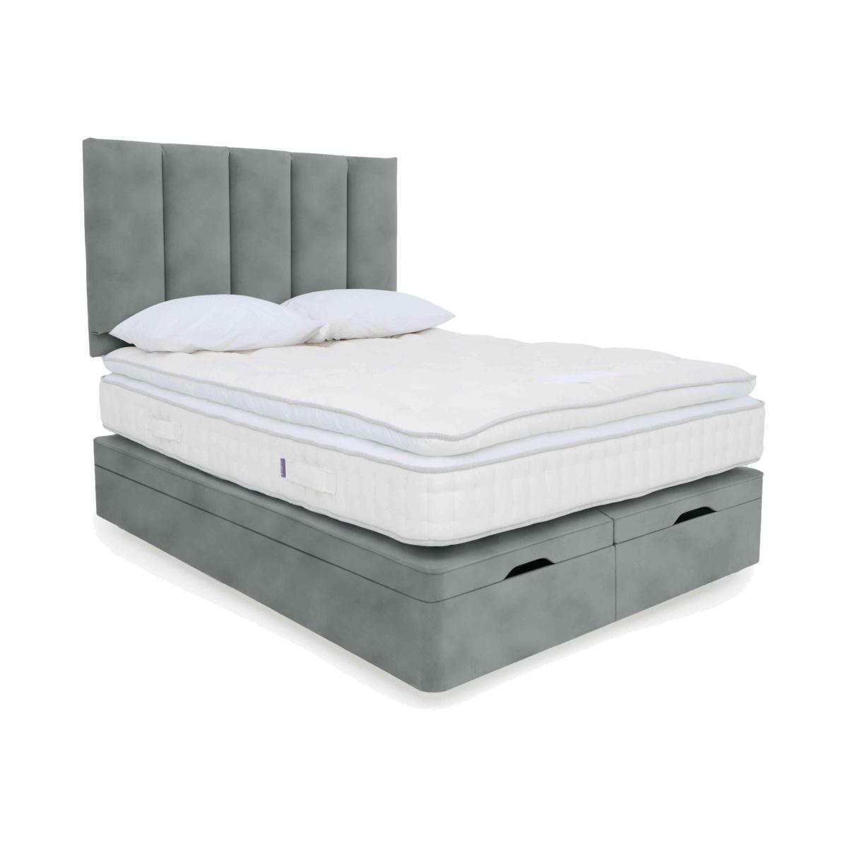 Yorkshire born and bred, Harrison Spinks Yorkshire mattresses and divan sets are exclusive to Furniture Village and handcrafted to order. Every mattress is layered with all-natural fillings that are either produced on Harrison Spinks’ own farm in Yorkshire or sourced locally, a commitment that means every bed is as environmentally-friendly as it is comfortable. High-density pocket springs along with thousands of cushioning micro springs ensure that every mattress promises both personalised support and sumptuous luxury. Sprung firm-edge divan bases are beautifully upholstered in a range of fabrics, and feature optional storage drawer configurations. Harrison Spinks is a family-owned company and has been making wonderful British beds since 1840. Pillow top mattress comfort meets storage-rich ottoman divan base in this divan set from Harrison Spinks. Affordable luxury. Why you'll love it Meet your new divan set – roomy ottoman storage plus a luxurious mattress. A no-turn pillow top mattress with 5,000 pocket springs in king size. The sumptuous pillow top is layered with micro springs. Mattress and pillow top are filled with springy wool and hypoallergenic hemp. All wool is ethically sourced from traceable British farms. Hemp is grown on Harrison Spinks’ own farm. Filled, tufted and side stitched by hand. Made without foam, glue and chemical fire-retardants for a more natural night’s sleep. In a choice of firmness – regular and firmer. Sprung base on castors with practical end-opening ottoman storage. Offered in a wide choice of upholstery fabrics. Handcrafted in Yorkshire exclusively for Furniture Village. This pillow top end ottoman divan set is part of the Harrison Spinks Yorkshire 5. K collection. What you need to know Headboard is an optional extra. Mattress type: Pocket spring. Depth: 30 cm. Firmness:Regular and firmer. Springs: 5,000 in king size – 1,000 pocket springs and 4,000 micro springs. Pillow top:Yes. Fillings: British wool, Yorkshire hemp. Cover: Wool and viscose. Requires turning: No. Base type: Pocket sprung with 1000 springs in king size. End ottoman storage. Sizes: Single, small double, double, king and super king. Mattress care:Air for 4 hours before using to remove any odour. Allow at least 4 hours for springs to settle and for mattress to attain its full size. Indentations caused by settlement of fillings or body weight are normal and are not considered defects. If used on a slatted bed frame, the space between slats must be no wider than 7.5 cm. Spaces wider than this may cause excess dipping of the mattress and invalidate the guarantee. Always use a mattress protector. Rotate regularly. Divan base care: Clean upholstery weekly using a soft brush or vacuum with the curtain attachment. Professional cleaning advised for oil- and grease-based stains. Some fabrics can show wear on areas of more use or in direct sunlight.