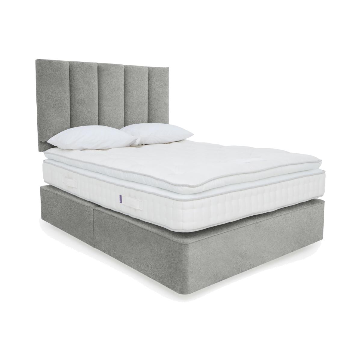 Yorkshire born and bred, Harrison Spinks Yorkshire mattresses and divan sets are exclusive to Furniture Village and handcrafted to order. Every mattress is layered with all-natural fillings that are either produced on Harrison Spinks’ own farm in Yorkshire or sourced locally, a commitment that means every bed is as environmentally-friendly as it is comfortable. High-density pocket springs along with thousands of cushioning micro springs ensure that every mattress promises both personalised support and sumptuous luxury. Sprung firm-edge divan bases are beautifully upholstered in a range of fabrics, and feature optional storage drawer configurations. Harrison Spinks is a family-owned company and has been making wonderful British beds since 1840. Choose the Harrison Spinks 5. K divan set and enjoy a handcrafted all-natural pillow top pocket spring mattress plus a divan base with optional built-in storage. Why you'll love it This pillow top divan set represents true luxury at a great-value price. With a no-turn pillow top mattress with 5,000 pocket springs in king size. The sumptuous pillow top is layered with micro springs. Mattress and pillow top are filled with springy wool and hypoallergenic hemp. All wool is ethically sourced from traceable British farms. Hemp is grown on Harrison Spinks’ own farm. Filled, tufted and side stitched by hand. Made without foam, glue and chemical fire-retardants for a more natural night’s sleep. In a choice of firmness – regular and firmer. Sprung base on castors with optional built-in storage drawers. Offered in a wide choice of upholstery fabrics. Handcrafted in Yorkshire exclusively for Furniture Village. This pillow top divan set is part of the Harrison Spinks Yorkshire 5. K collection. What you need to know Headboard is an optional extra. Mattress type: Pocket spring. Depth: 30 cm. Firmness:Regular and firmer. Springs: 5,000 in king size – 1,000 pocket springs and 4,000 micro springs. Pillow top:Yes. Fillings: British wool, Yorkshire hemp. Cover: Wool and viscose. Requires turning: No. Base type: Pocket sprung with 1000 springs in king size. Optional drawer storage. Sizes: Single, small double, double, king and super king. Mattress care:Air for 4 hours before using to remove any odour. Allow at least 4 hours for springs to settle and for mattress to attain its full size. Indentations caused by settlement of fillings or body weight are normal and are not considered defects. If used on a slatted bed frame, the space between slats must be no wider than 7.5 cm. Spaces wider than this may cause excess dipping of the mattress and invalidate the guarantee. Always use a mattress protector. Rotate regularly. Divan base care: Clean upholstery weekly using a soft brush or vacuum with the curtain attachment. Professional cleaning advised for oil- and grease-based stains. Some fabrics can show wear on areas of more use or in direct sunlight.