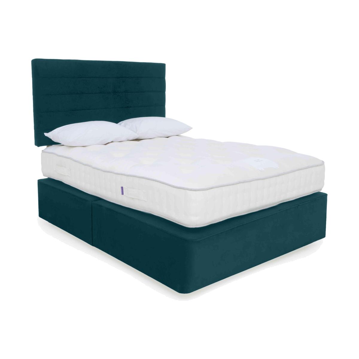 Yorkshire born and bred, Harrison Spinks Yorkshire mattresses and divan sets are exclusive to Furniture Village and handcrafted to order. Every mattress is layered with all-natural fillings that are either produced on Harrison Spinks’ own farm in Yorkshire or sourced locally, a commitment that means every bed is as environmentally-friendly as it is comfortable. High-density pocket springs along with thousands of cushioning micro springs ensure that every mattress promises both personalised support and sumptuous luxury. Sprung firm-edge divan bases are beautifully upholstered in a range of fabrics, and feature optional storage drawer configurations. Harrison Spinks is a family-owned company and has been making wonderful British beds since 1840. You’ll sleep better on this wonderful Harrison Spinks divan set. This divan bed includes a firm mattress with natural wool and hemp fillings plus a sprung divan base. Why you'll love it Style meets support in this Harrison Spinks divan set. This divan set’s firm-feel, no-turn mattress has 7,500 pocket springs in king size. With a super-supportive CortecT M Quad spring system plus layers of micro springs. Filled with naturally springy wool, hypoallergenic hemp and breathable cotton. All wool is ethically sourced from traceable British farms. Hemp is grown on Harrison Spinks’ own farm. Filled, tufted and side stitched by hand. Made without foam, glue and chemical fire-retardants for a more natural night’s sleep. Sprung base on castors with optional built-in storage drawers. Offered in a wide choice of upholstery fabrics. Handcrafted in Yorkshire exclusively for Furniture Village. This divan set is part of the Harrison Spinks Yorkshire 7.5. K collection. What you need to know Headboard is an optional extra. Mattress type: Pocket spring. Depth: 25 cm. Firmness: Firm. Springs: 7,500 in king size. Pillow top: No. Fillings: British wool, Yorkshire hemp, cotton. Cover: Wool and viscose. Requires turning: No. Base type: Pocket sprung with 1000 springs in king size. Optional drawer storage. Sizes: Single, small double, double, king and super king. Mattress care:Air for 4 hours before using to remove any odour. Allow at least 4 hours for springs to settle and for mattress to attain its full size. Indentations caused by settlement of fillings or body weight are normal and are not considered defects. If used on a slatted bed frame, the space between slats must be no wider than 7.5 cm. Spaces wider than this may cause excess dipping of the mattress and invalidate the guarantee. Always use a mattress protector. Rotate regularly. Divan base care: Clean upholstery weekly using a soft brush or vacuum with the curtain attachment. Professional cleaning advised for oil- and grease-based stains. Some fabrics can show wear on areas of more use or in direct sunlight.