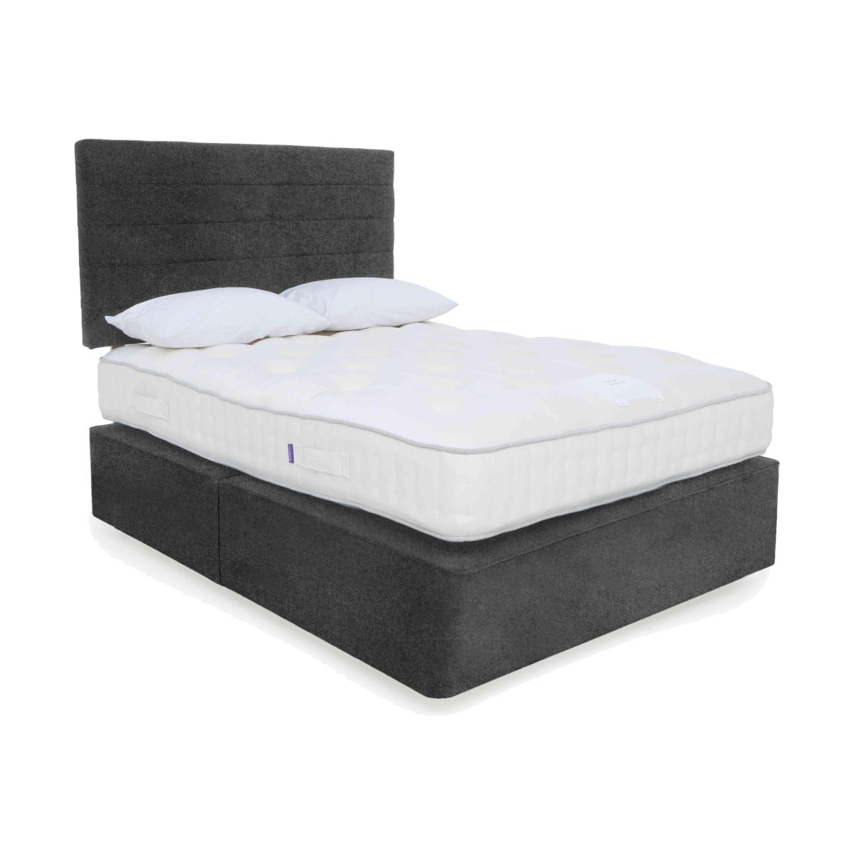 Yorkshire born and bred, Harrison Spinks Yorkshire mattresses and divan sets are exclusive to Furniture Village and handcrafted to order. Every mattress is layered with all-natural fillings that are either produced on Harrison Spinks’ own farm in Yorkshire or sourced locally, a commitment that means every bed is as environmentally-friendly as it is comfortable. High-density pocket springs along with thousands of cushioning micro springs ensure that every mattress promises both personalised support and sumptuous luxury. Sprung firm-edge divan bases are beautifully upholstered in a range of fabrics, and feature optional storage drawer configurations. Harrison Spinks is a family-owned company and has been making wonderful British beds since 1840. You’ll sleep better on this wonderful Harrison Spinks divan set. This divan bed includes a firm mattress with natural wool and hemp fillings plus a sprung divan base. Why you'll love it Style meets support in this Harrison Spinks divan set. This divan set’s firm-feel, no-turn mattress has 7,500 pocket springs in king size. With a super-supportive CortecT M Quad spring system plus layers of micro springs. Filled with naturally springy wool, hypoallergenic hemp and breathable cotton. All wool is ethically sourced from traceable British farms. Hemp is grown on Harrison Spinks’ own farm. Filled, tufted and side stitched by hand. Made without foam, glue and chemical fire-retardants for a more natural night’s sleep. Sprung base on castors with optional built-in storage drawers. Offered in a wide choice of upholstery fabrics. Handcrafted in Yorkshire exclusively for Furniture Village. This divan set is part of the Harrison Spinks Yorkshire 7.5. K collection. What you need to know Headboard is an optional extra. Mattress type: Pocket spring. Depth: 25 cm. Firmness: Firm. Springs: 7,500 in king size. Pillow top: No. Fillings: British wool, Yorkshire hemp, cotton. Cover: Wool and viscose. Requires turning: No. Base type: Pocket sprung with 1000 springs in king size. Optional drawer storage. Sizes: Single, small double, double, king and super king. Mattress care:Air for 4 hours before using to remove any odour. Allow at least 4 hours for springs to settle and for mattress to attain its full size. Indentations caused by settlement of fillings or body weight are normal and are not considered defects. If used on a slatted bed frame, the space between slats must be no wider than 7.5 cm. Spaces wider than this may cause excess dipping of the mattress and invalidate the guarantee. Always use a mattress protector. Rotate regularly. Divan base care: Clean upholstery weekly using a soft brush or vacuum with the curtain attachment. Professional cleaning advised for oil- and grease-based stains. Some fabrics can show wear on areas of more use or in direct sunlight.