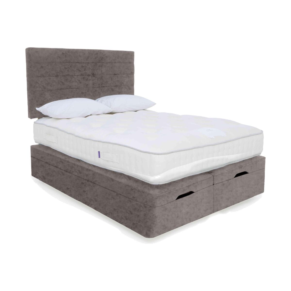 Yorkshire born and bred, Harrison Spinks Yorkshire mattresses and divan sets are exclusive to Furniture Village and handcrafted to order. Every mattress is layered with all-natural fillings that are either produced on Harrison Spinks’ own farm in Yorkshire or sourced locally, a commitment that means every bed is as environmentally-friendly as it is comfortable. High-density pocket springs along with thousands of cushioning micro springs ensure that every mattress promises both personalised support and sumptuous luxury. Sprung firm-edge divan bases are beautifully upholstered in a range of fabrics, and feature optional storage drawer configurations. Harrison Spinks is a family-owned company and has been making wonderful British beds since 1840. Choose a bed that offers the firm support you want, the effortless elegant style that will elevate your bedroom, and the roomy ottoman storage that’ll help you keep your space free of clutter. Why you'll love it Style, support and storage – this Harrison Spinks end ottoman divan set has it all. This divan set’s firm-feel, no-turn mattress has 7,500 pocket springs in king size. With a super-supportive CortecT M Quad spring system plus layers of micro springs. Filled with naturally springy wool, hypoallergenic hemp and breathable cotton. All wool is ethically sourced from traceable British farms. Hemp is grown on Harrison Spinks’ own farm. Filled, tufted and side stitched by hand. Made without foam, glue and chemical fire-retardants for a more natural night’s sleep. Sprung base on castors with practical end-opening ottoman storage. Offered in a wide choice of upholstery fabrics. Handcrafted in Yorkshire exclusively for Furniture Village. This end ottoman divan set is part of the Harrison Spinks Yorkshire 7.5. K collection. What you need to know Headboard is an optional extra. Mattress type: Pocket spring. Depth: 25 cm. Firmness: Firm. Springs: 7,500 in king size. Pillow top: No. Fillings: British wool, Yorkshire hemp, cotton. Cover: Wool and viscose. Requires turning: No. Base type: Pocket sprung with 1000 springs in king size. End ottoman storage. Sizes: Single, small double, double, king and super king. Mattress care:Air for 4 hours before using to remove any odour. Allow at least 4 hours for springs to settle and for mattress to attain its full size. Indentations caused by settlement of fillings or body weight are normal and are not considered defects. If used on a slatted bed frame, the space between slats must be no wider than 7.5 cm. Spaces wider than this may cause excess dipping of the mattress and invalidate the guarantee. Always use a mattress protector. Rotate regularly. Divan base care: Clean upholstery weekly using a soft brush or vacuum with the curtain attachment. Professional cleaning advised for oil- and grease-based stains. Some fabrics can show wear on areas of more use or in direct sunlight.
