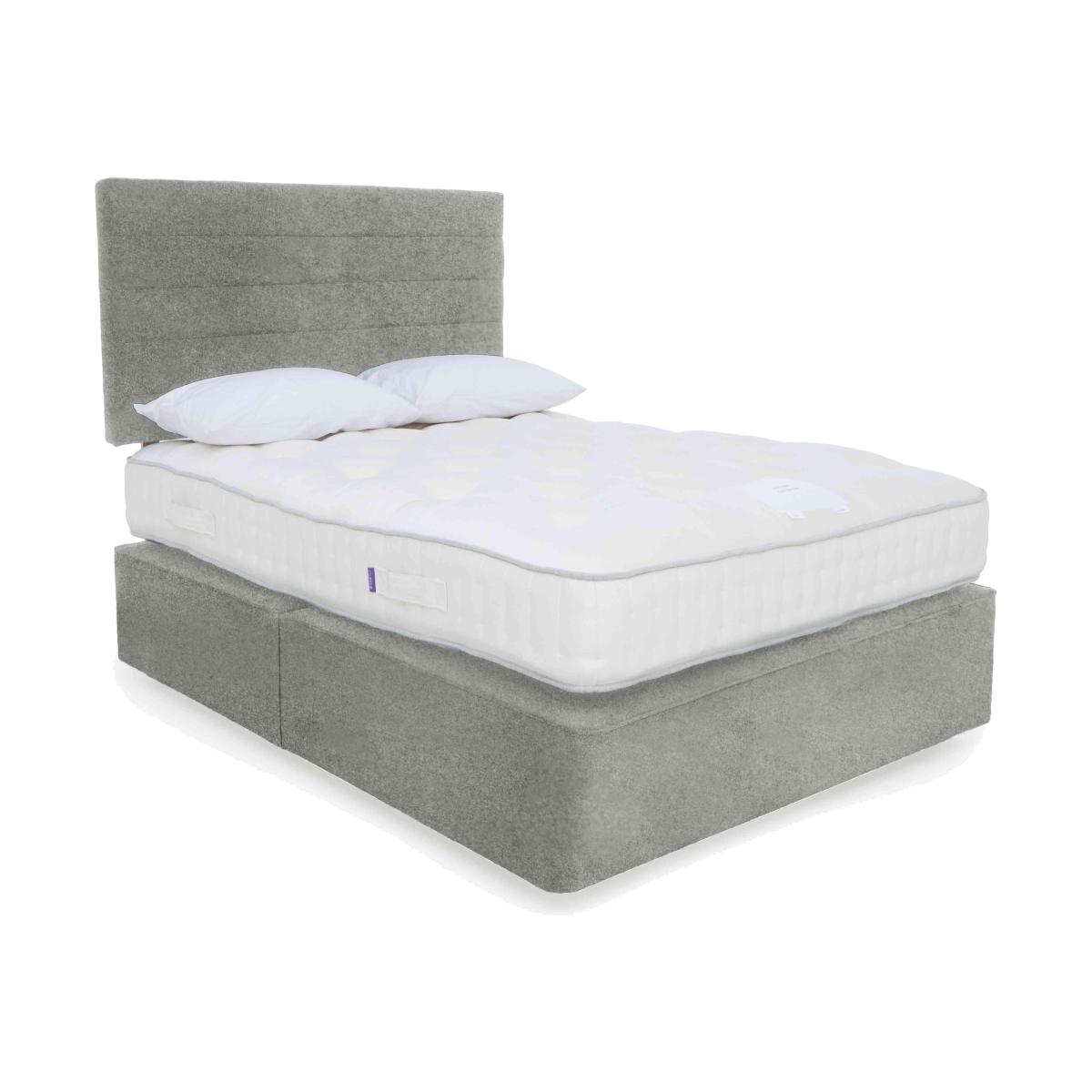 Yorkshire born and bred, Harrison Spinks Yorkshire mattresses and divan sets are exclusive to Furniture Village and handcrafted to order. Every mattress is layered with all-natural fillings that are either produced on Harrison Spinks’ own farm in Yorkshire or sourced locally, a commitment that means every bed is as environmentally-friendly as it is comfortable. High-density pocket springs along with thousands of cushioning micro springs ensure that every mattress promises both personalised support and sumptuous luxury. Sprung firm-edge divan bases are beautifully upholstered in a range of fabrics, and feature optional storage drawer configurations. Harrison Spinks is a family-owned company and has been making wonderful British beds since 1840. You’ll sleep better on this wonderful Harrison Spinks divan set. This divan bed includes a firm mattress with natural wool and hemp fillings plus a sprung divan base. Why you'll love it Style meets support in this Harrison Spinks divan set. This divan set’s firm-feel, no-turn mattress has 7,500 pocket springs in king size. With a super-supportive CortecT M Quad spring system plus layers of micro springs. Filled with naturally springy wool, hypoallergenic hemp and breathable cotton. All wool is ethically sourced from traceable British farms. Hemp is grown on Harrison Spinks’ own farm. Filled, tufted and side stitched by hand. Made without foam, glue and chemical fire-retardants for a more natural night’s sleep. Sprung base on castors with optional built-in storage drawers. Offered in a wide choice of upholstery fabrics. Handcrafted in Yorkshire exclusively for Furniture Village. This divan set is part of the Harrison Spinks Yorkshire 7.5. K collection. What you need to know Headboard is an optional extra. Mattress type: Pocket spring. Depth: 25 cm. Firmness: Firm. Springs: 7,500 in king size. Pillow top: No. Fillings: British wool, Yorkshire hemp, cotton. Cover: Wool and viscose. Requires turning: No. Base type: Pocket sprung with 1000 springs in king size. Optional drawer storage. Sizes: Single, small double, double, king and super king. Mattress care:Air for 4 hours before using to remove any odour. Allow at least 4 hours for springs to settle and for mattress to attain its full size. Indentations caused by settlement of fillings or body weight are normal and are not considered defects. If used on a slatted bed frame, the space between slats must be no wider than 7.5 cm. Spaces wider than this may cause excess dipping of the mattress and invalidate the guarantee. Always use a mattress protector. Rotate regularly. Divan base care: Clean upholstery weekly using a soft brush or vacuum with the curtain attachment. Professional cleaning advised for oil- and grease-based stains. Some fabrics can show wear on areas of more use or in direct sunlight.