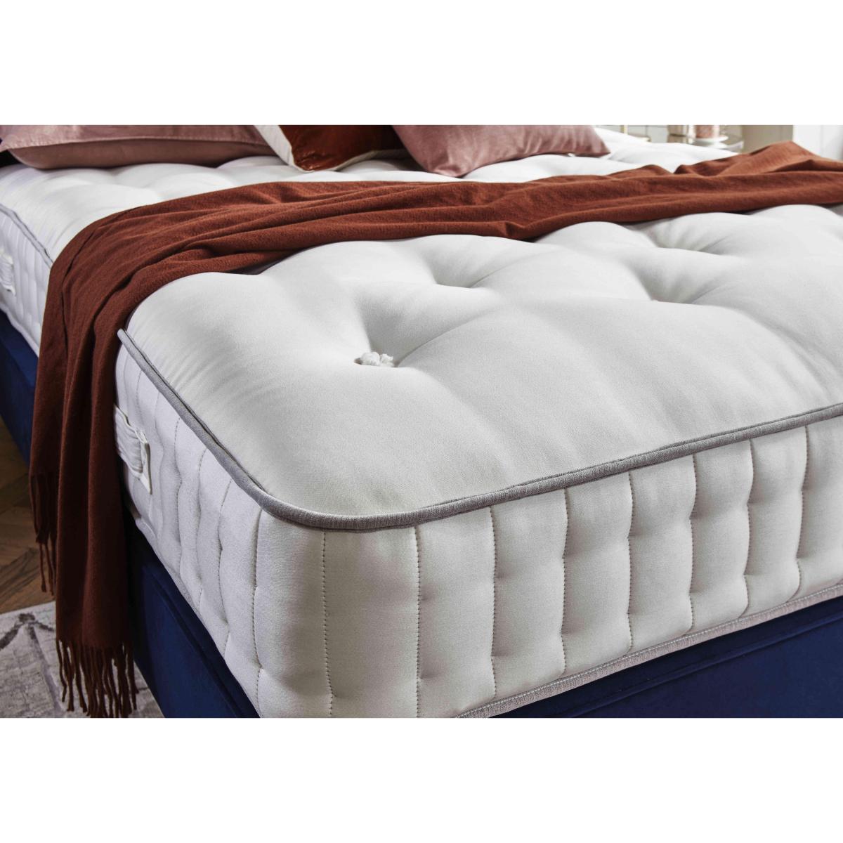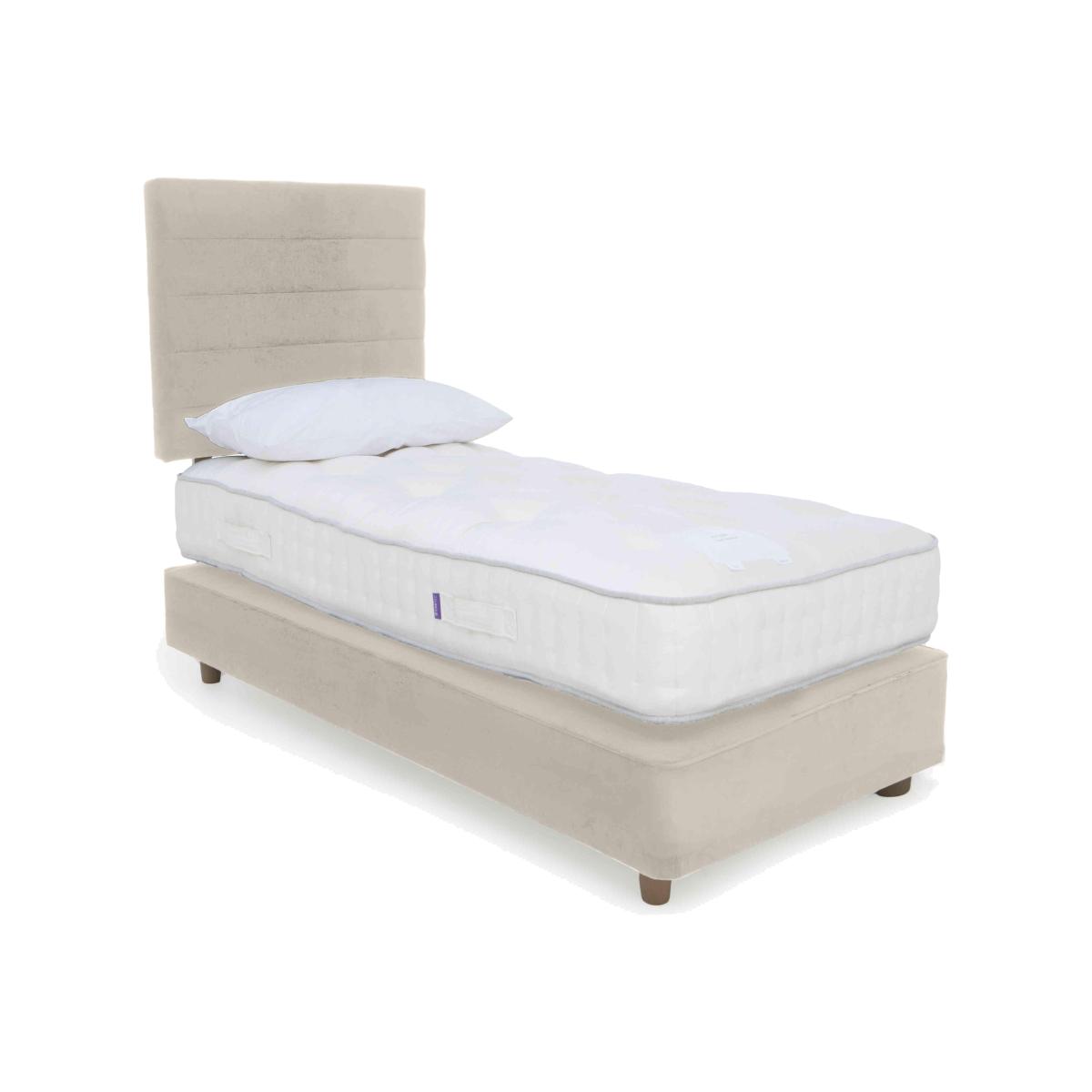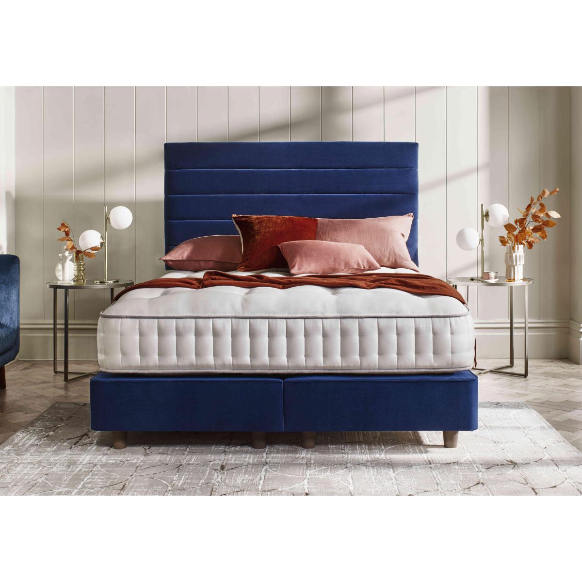 Yorkshire born and bred, Harrison Spinks Yorkshire mattresses and divan sets are exclusive to Furniture Village and handcrafted to order. Every mattress is layered with all-natural fillings that are either produced on Harrison Spinks’ own farm in Yorkshire or sourced locally, a commitment that means every bed is as environmentally-friendly as it is comfortable. High-density pocket springs along with thousands of cushioning micro springs ensure that every mattress promises both personalised support and sumptuous luxury. Sprung firm-edge divan bases are beautifully upholstered in a range of fabrics, and feature optional storage drawer configurations. Harrison Spinks is a family-owned company and has been making wonderful British beds since 1840. Get the stylish modern look you want plus the firm mattress support you need with this beautiful Harrison Spinks shallow divan set on taupe legs. Why you'll love it Cool bedroom style meets superb support in this shallow divan set with taupe legs. This divan set’s firm-feel, no-turn mattress has 7,500 pocket springs in king size. With a super-supportive CortecT M Quad spring system plus layers of micro springs. Filled with naturally springy wool, hypoallergenic hemp and breathable cotton. All wool is ethically sourced from traceable British farms. Hemp is grown on Harrison Spinks’ own farm. Filled, tufted and side stitched by hand. Made without foam, glue and chemical fire-retardants for a more natural night’s sleep. Contemporary shallow divan base with taupe legs is effortlessly stylish. Offered in a wide choice of upholstery fabrics. Other leg finishes available. Handcrafted in Yorkshire exclusively for Furniture Village. This shallow divan set with taupe legs is part of the Harrison Spinks Yorkshire 7.5. K collection. What you need to know Headboard is an optional extra. Mattress type: Pocket spring. Depth: 25 cm. Firmness: Firm. Springs: 7,500 in king size. Pillow top: No. Fillings: British wool, Yorkshire hemp, cotton. Cover: Wool and viscose. Requires turning: No. Base type: Pocket sprung with 1000 springs in king size. Sizes: Single, small double, double, king and super king. Mattress care:Air for 4 hours before using to remove any odour. Allow at least 4 hours for springs to settle and for mattress to attain its full size. Indentations caused by settlement of fillings or body weight are normal and are not considered defects. If used on a slatted bed frame, the space between slats must be no wider than 7.5 cm. Spaces wider than this may cause excess dipping of the mattress and invalidate the guarantee. Always use a mattress protector. Rotate regularly. Divan base care: Clean upholstery weekly using a soft brush or vacuum with the curtain attachment. Professional cleaning advised for oil- and grease-based stains. Some fabrics can show wear on areas of more use or in direct sunlight.