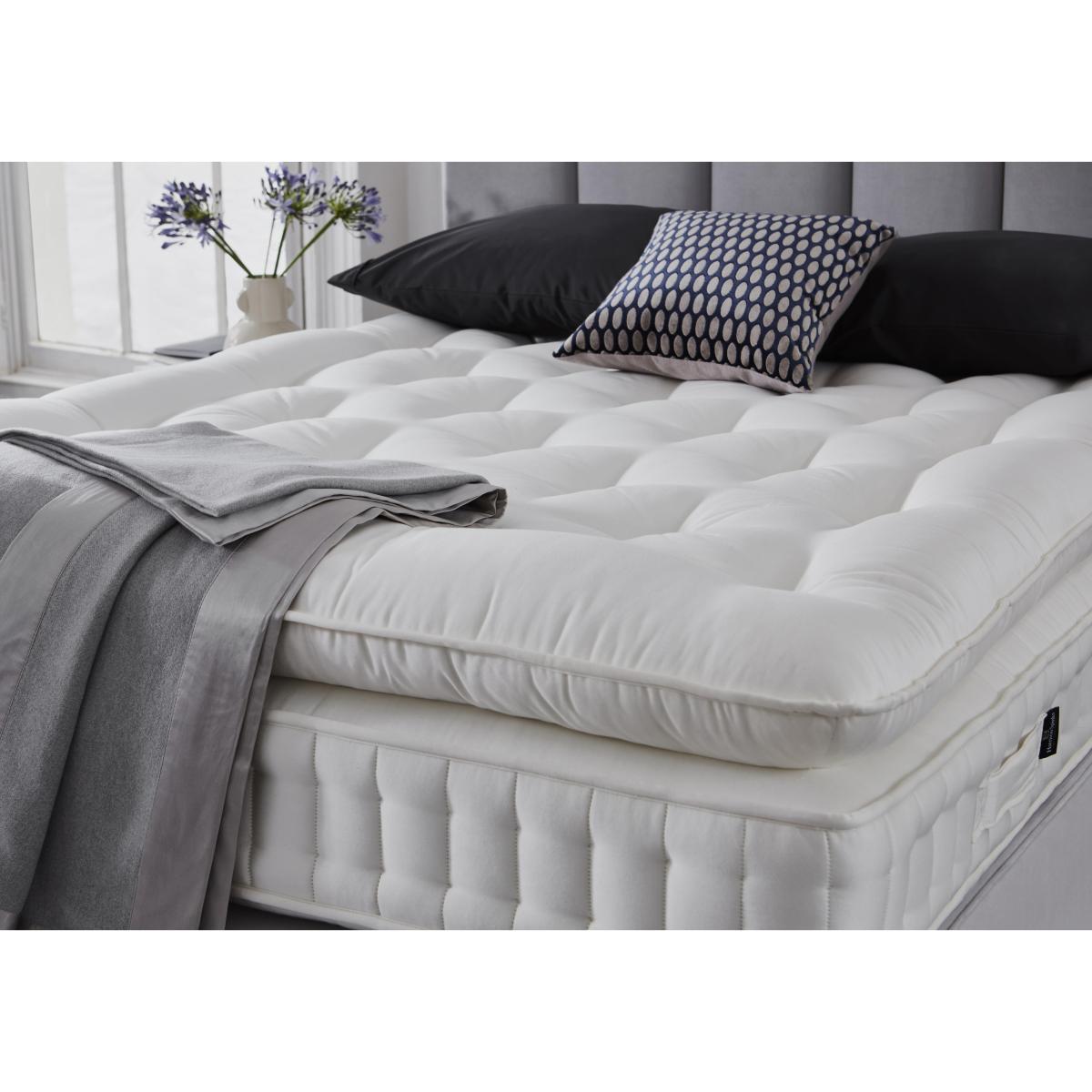 Yorkshire born and bred, the Harrison Spinks Yorkshire range of luxurious mattresses and divan sets are exclusive to Furniture Village and handcrafted to order. Every mattress is layered with 100% all-natural fillings that are either produced on Harrison Spinks’ own farm in Yorkshire or sourced locally, a commitment that means every bed is as environmentally-friendly as it is sumptuously comfortable. Patented higher-count spring systems with high-density pocket springs, made in Leeds, ensure that every mattress promises precisely personalised support and perfect spinal alignment. Pocket sprung divan bases with True Edge technology are beautifully upholstered in a range of fabrics, and feature a choice of optional storage drawer configurations. Pair yours with a Harrison Spinks handcrafted luxury headboard. Harrison Spinks is a family-owned company and has been making wonderful British beds since 1840. Luxurious handcrafted Harrison Spinks divan set, only at Furniture Village. Pillow top mattress with 9,500 pocket springs in king size plus hemp, Yorkshire wool and cotton. Sprung firm edge divan base has optional drawer storage. Headboard is an optional extra. Experience true comfort with the Harrison Spinks Yorkshire 9,500 divan set. Handcrafted to order in Yorkshire, this superb bed features a wonderfully comfortable 24 cm mattress with cushioning pillow top. Its all-natural fillings include locally-grown mildew-resistant hemp, naturally supportive Yorkshire wool, and moisture-wicking cotton. The patented spring system has three layers of 9,500 high-density pocket springs and mini pocket springs in king size for perfect support. Hand side stitching, tufting and tape edging, and a cover made of a chemical-free, fire-retardant fabric complete this wonderful mattress. Beautifully upholstered in a choice of fabrics and colours, the divan base has 2,500 pocket springs in king size and True Edge technology for a firmer edge that helps maximise the sleeping surface. It’s offered with optional storage drawers. Created exclusively for Furniture Village, the Harrison Spinks Yorkshire 9,500 divan set is available in medium and firm tension, as well as split tension in king and super king sizes. It’s part of the Harrison Spinks Yorkshire collection and is designed to pair with the Harrison Spinks Cedar floor standing headboard. Product images are representative. Find out more. Did you know?. Your mattress may have a faint odour which will dissipate after airing. The mattress should be aired for four hours after delivery to freshen and remove any aroma from storage. It may take time for your mattress to attain its full size once the springs have settled to the correct position. This is due to the mattress being upright during transit. Settlement of fillings and indentations caused by body weight compressing the fillings are natural and not considered defects. This can be minimised by regular rotating.