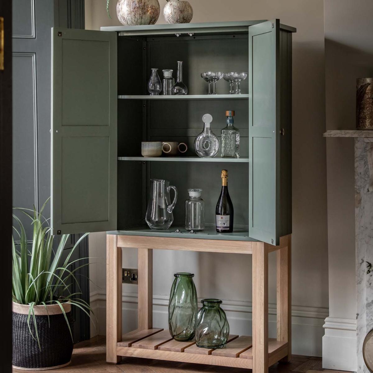 The classic farmhouse style cabinet gets a modern update with this stylish two door cupboard. This cabinet offers plenty of space with both an upper cupboard and a lower shelf, making it a great storage solution. The traditional rustic elements such as a solid oak base are paired with the hand painted textured finish top to add a contemporary twist.