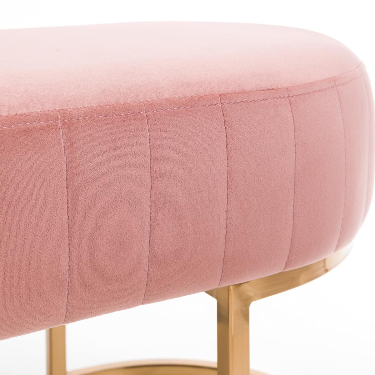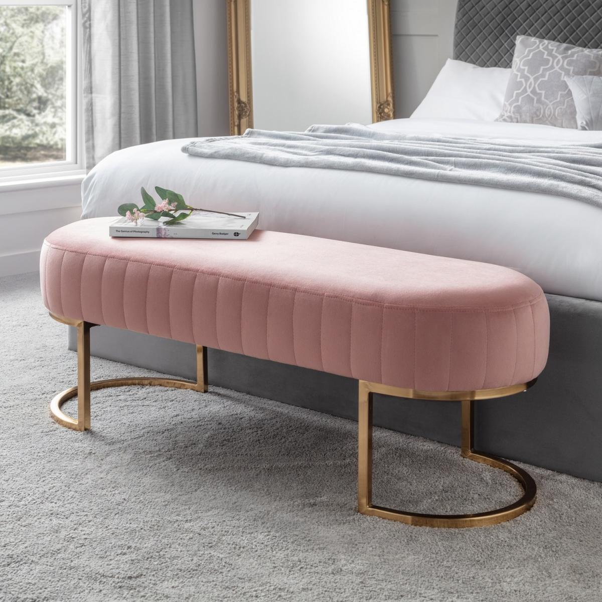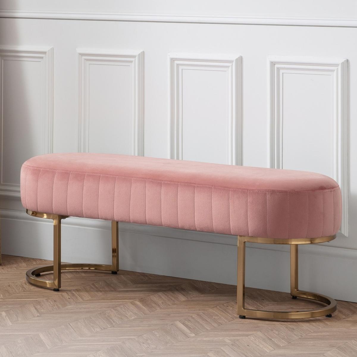 I’m really fond of this pink bench for its streamlined shape and soft velvet upholstery - it brings a hint of warmth without feeling too fussy. The brass-tone legs introduce just enough sparkle to lift a neutral hallway or to sit at the end of a bed in a bedroom scheme. Styling tip: pair it with a low-profile tray to hold a few coffee-table books or a small vase of fresh foliage, and layer a fine-knit throw or a contrast cushion to break up the velvet. It also works well against deep greys or rich navies if you’d like a more dramatic look.