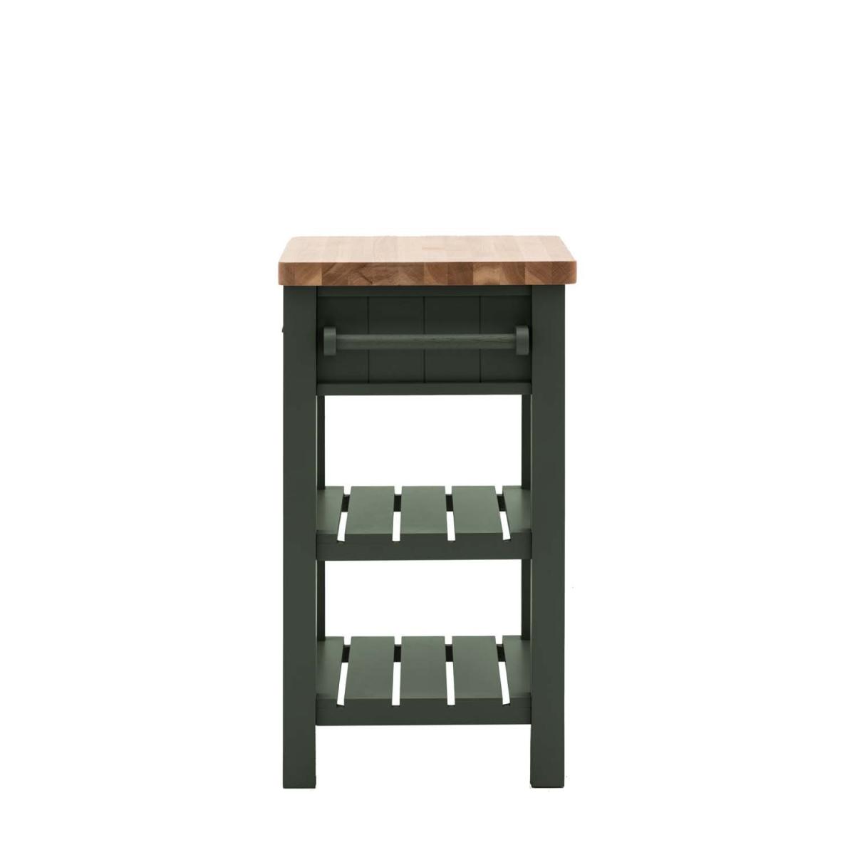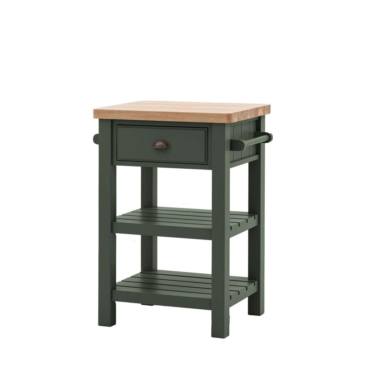 The Harrogate butchers block provides additional workspace and storage to your kitchen. The solid oak worktop is durable enough for daily use, making it a practical feature in any prep space. With two shelves, a drawer for all of your chopping accessories, and a convenient hanging rail ideal for a tea towel, this unit introduces succinct practicality to classic style. A hand painted base and metal drawer handles make an otherwise traditionally styled butchers block a more contemporary choice. Also available in meteor, prairie, or clay varieties to suit any kitchen décor.