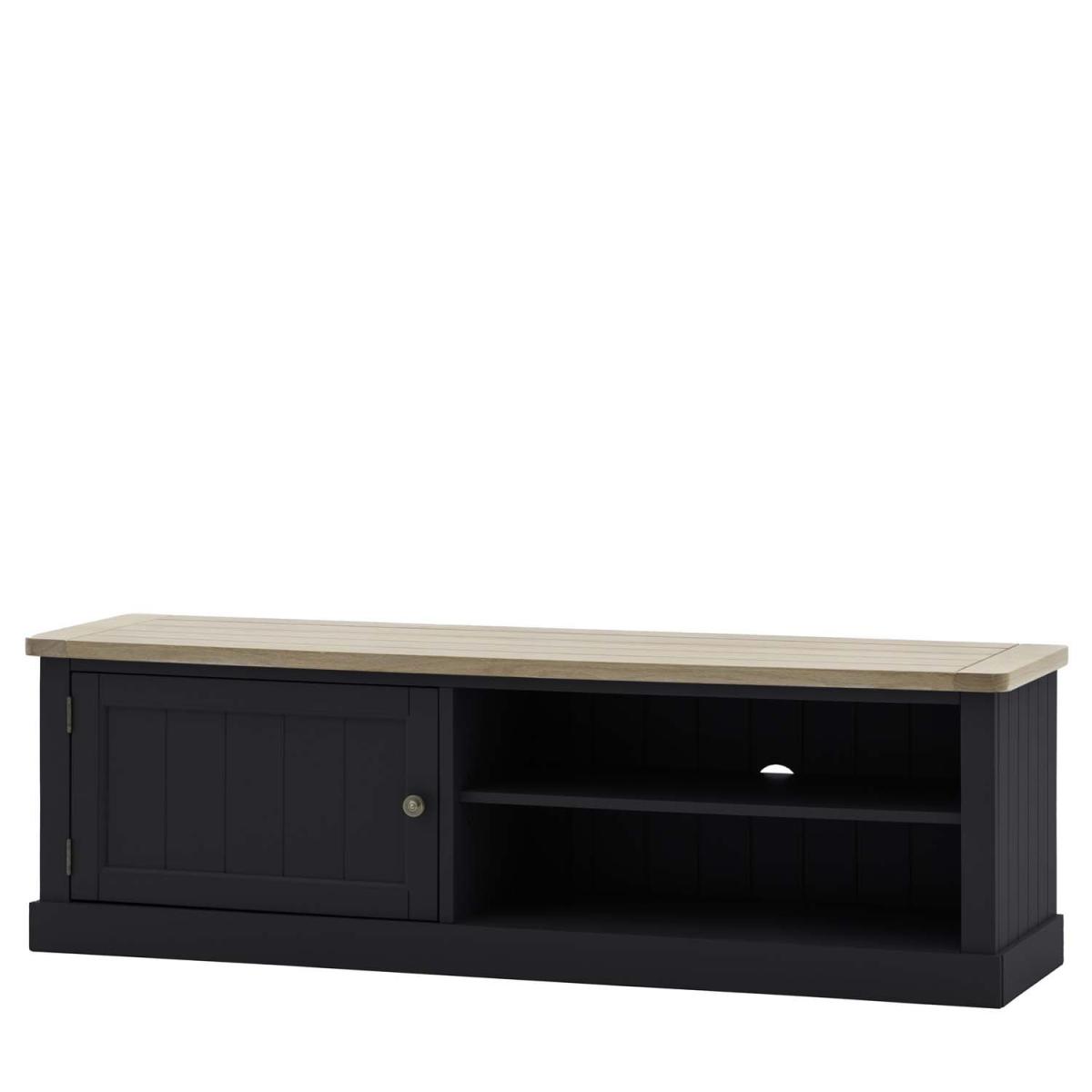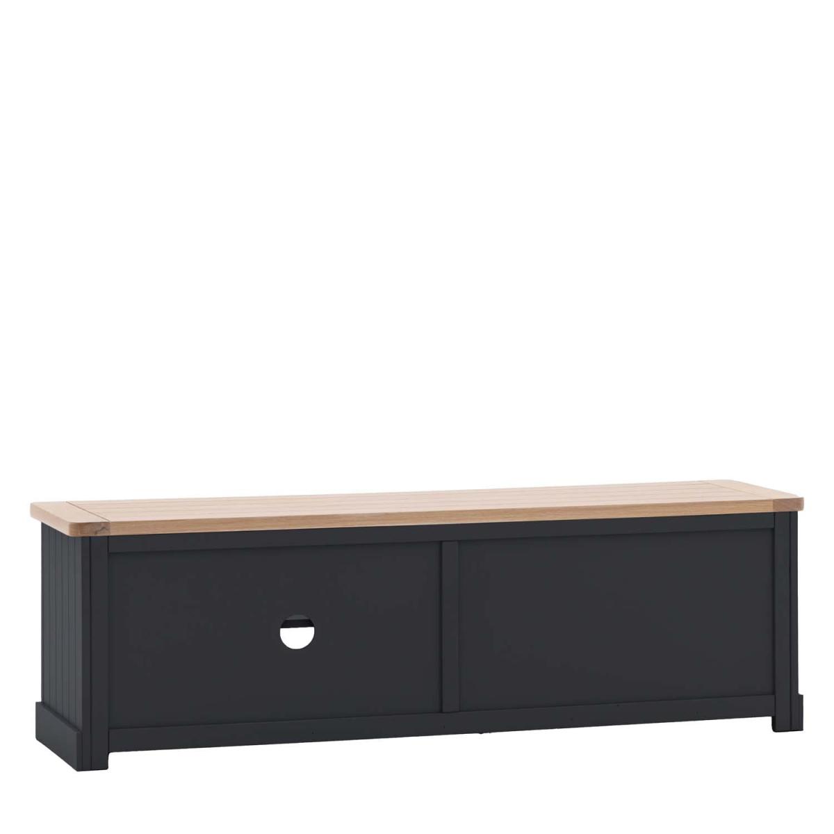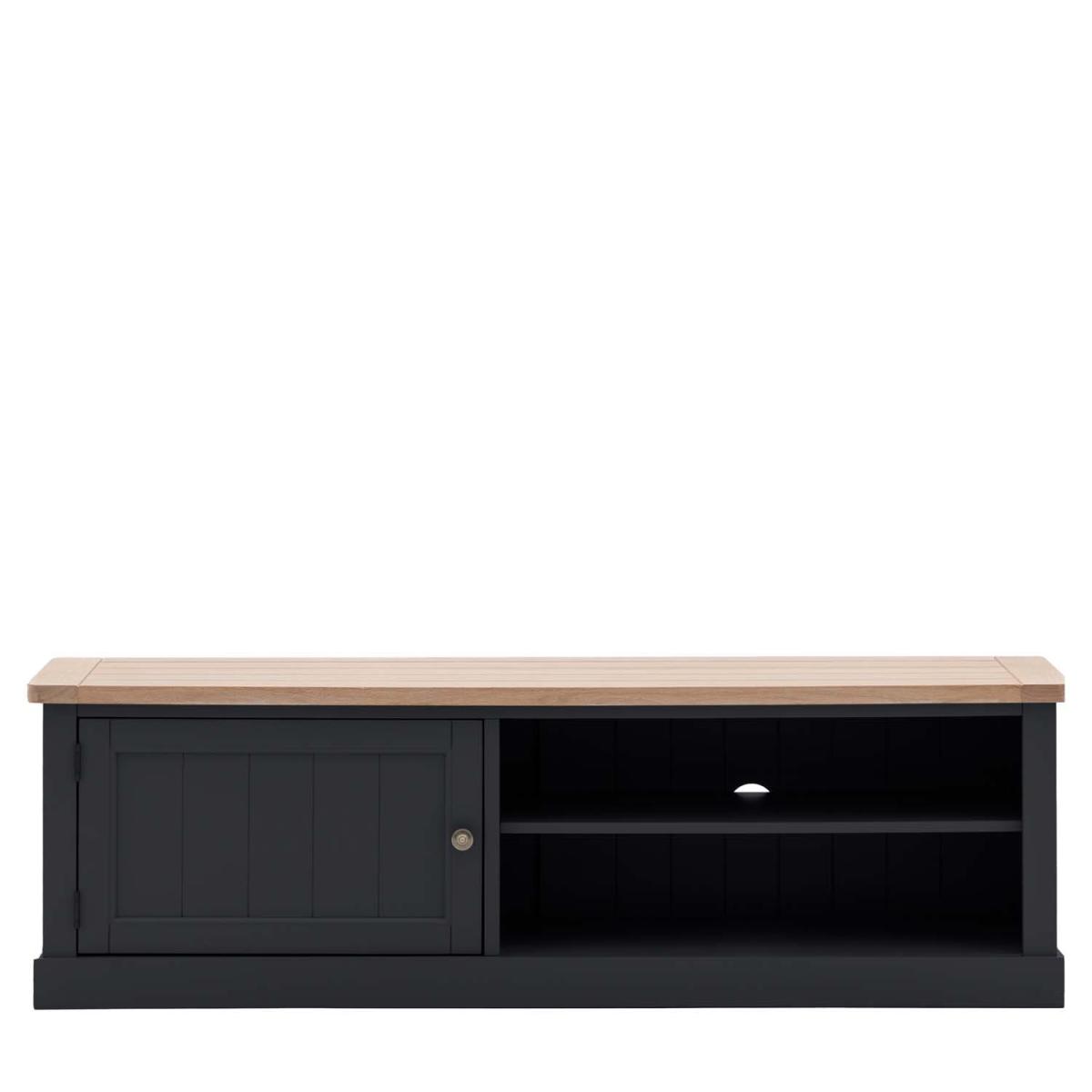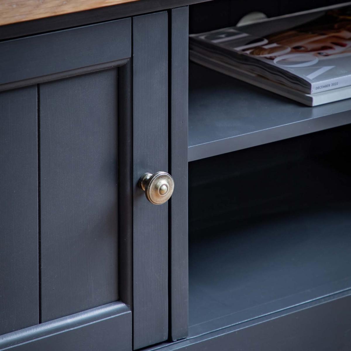 The Harrogate media unit is the quintessential combination of practical and stylish. An ideal TV stand, the traditional grooved and planked oak top creates a stunning contrast to the modern style hand painted body and metal door handles. The single cupboard allows you to keep your entertainment essentials conveniently placed but tidily hidden away, while the adjustable shelves are perfect for displaying gadgets, accessories, or ornaments. Whether you choose this 'meteor' shade or our 'prairie' variety for a lighter aesthetic, the neutral tones of the Harrogate entertainment units make them right at home in any living room.