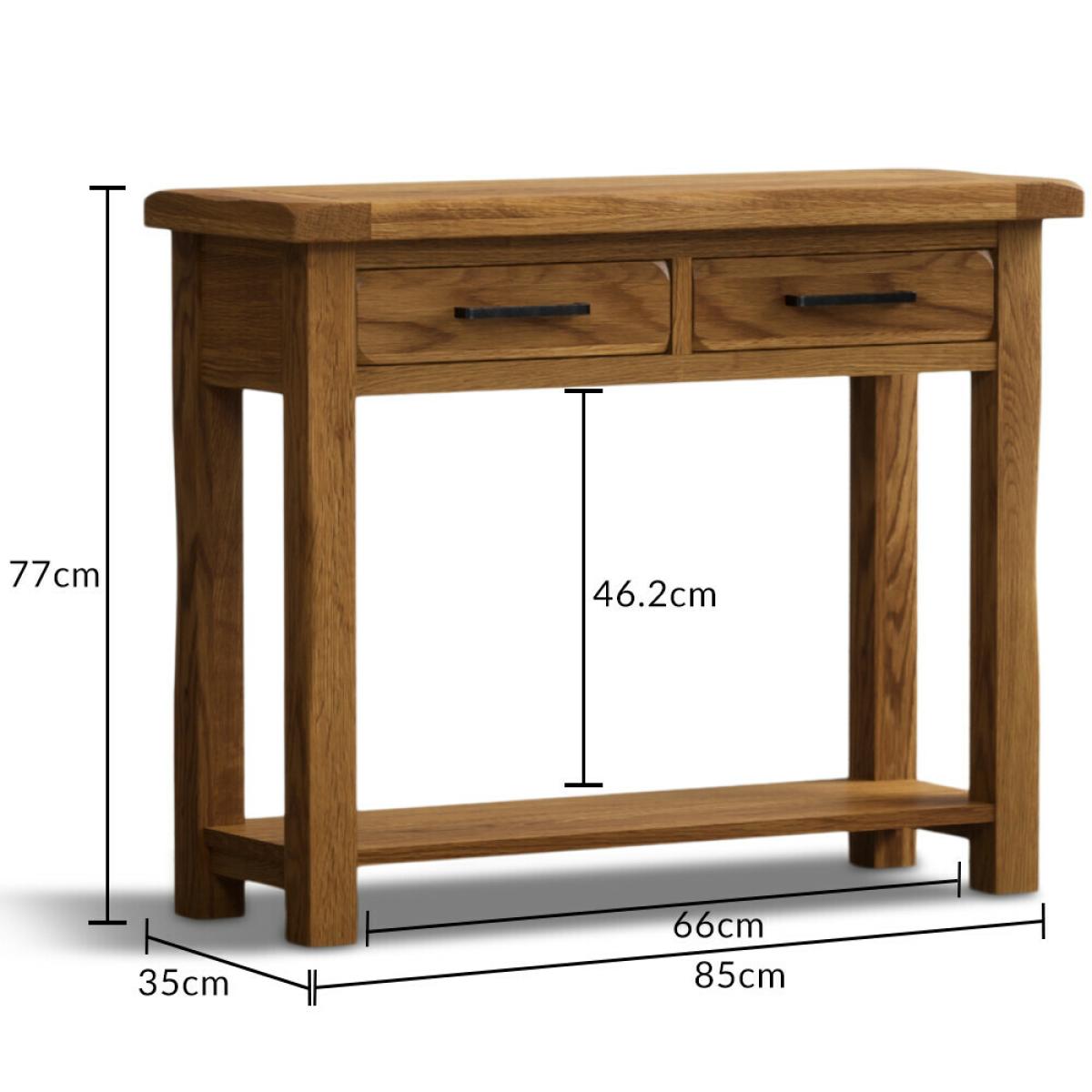 Harrogate Rustic Solid Oak 2 Drawer Console Table