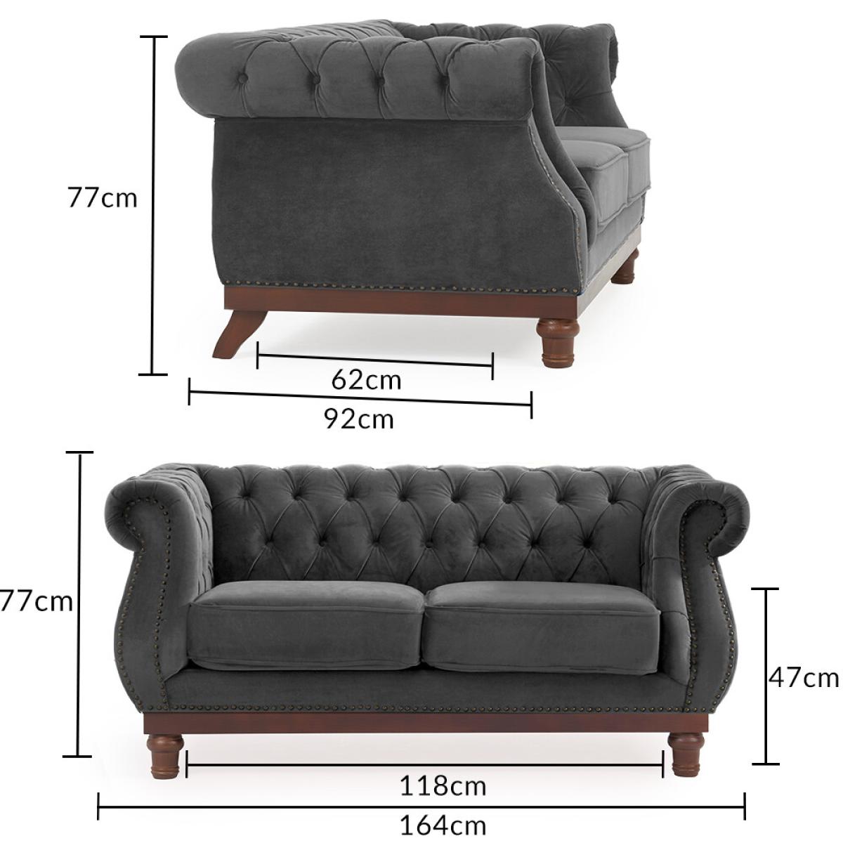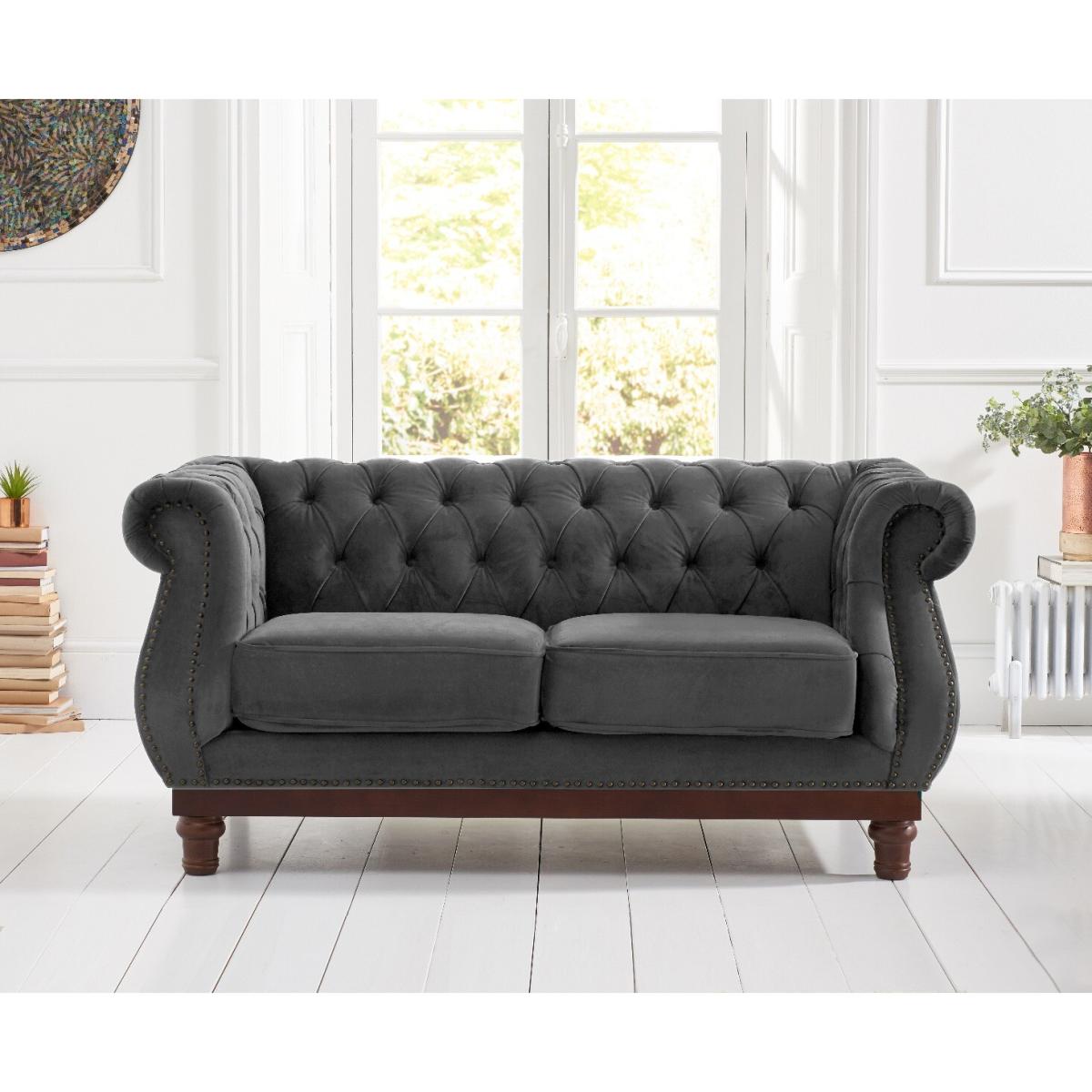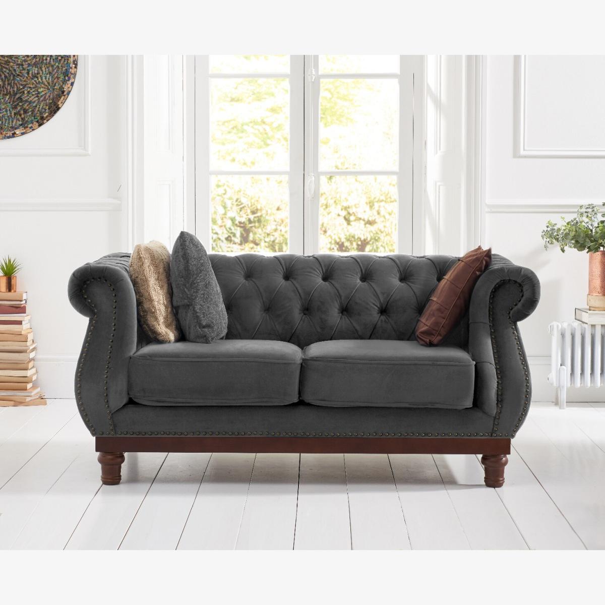 Harrow Chesterfield Dark Grey Velvet 2 Seater Sofa