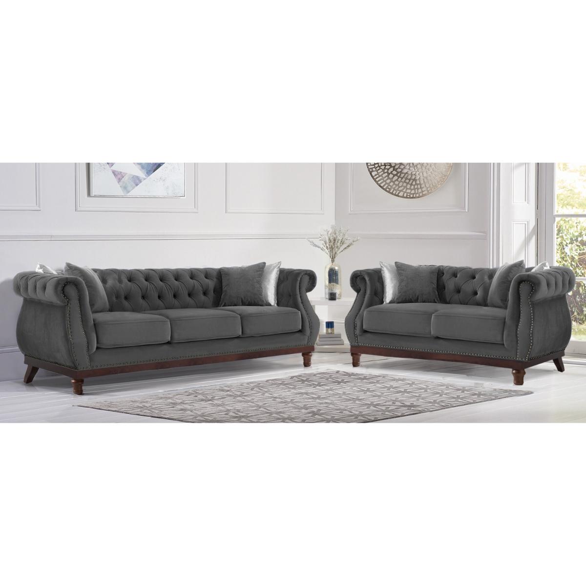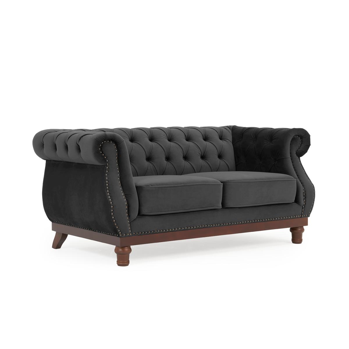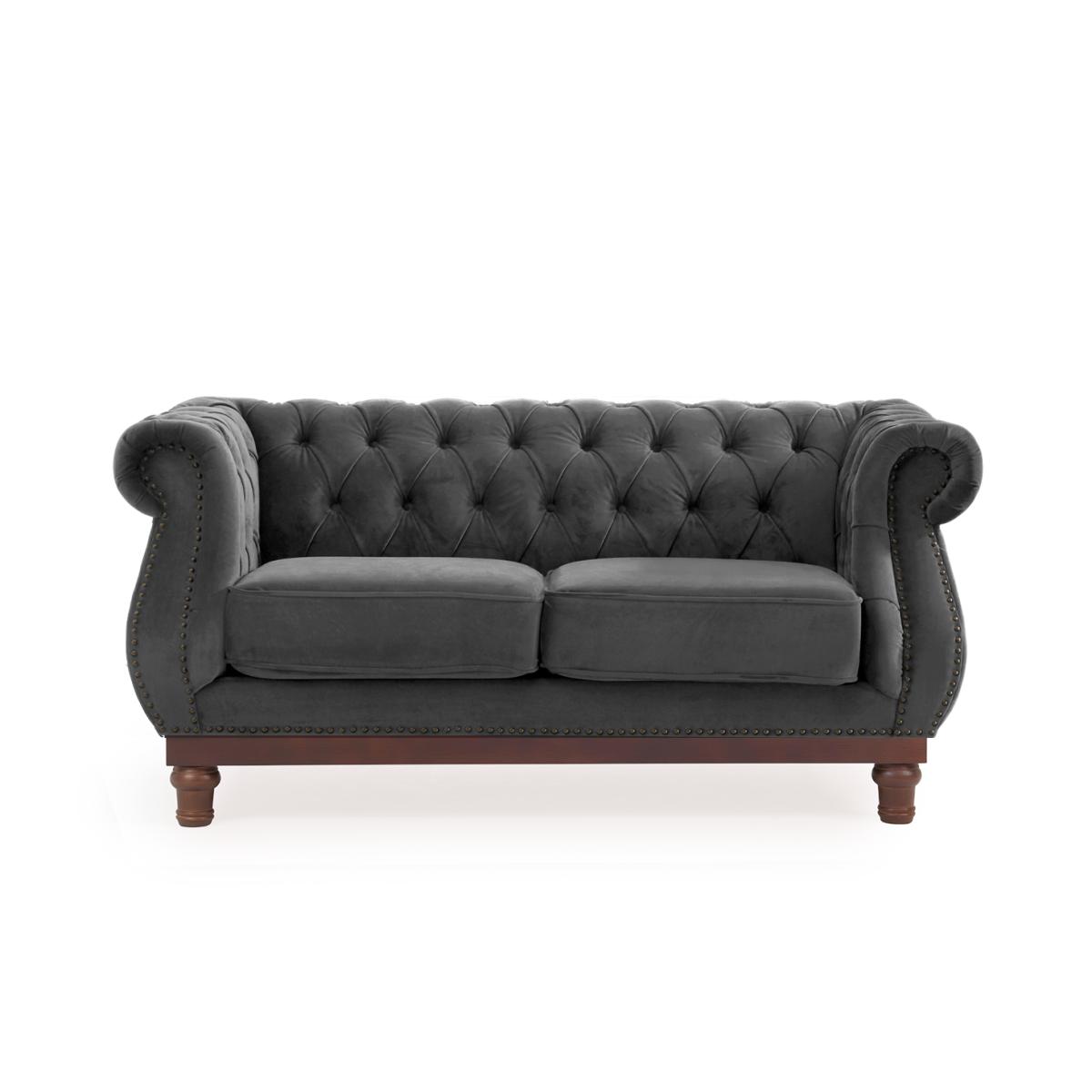 Harrow Chesterfield Dark Grey Velvet 2 Seater Sofa