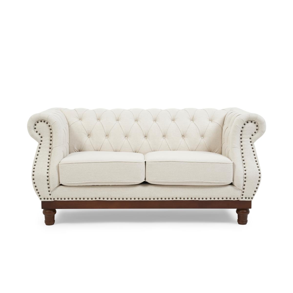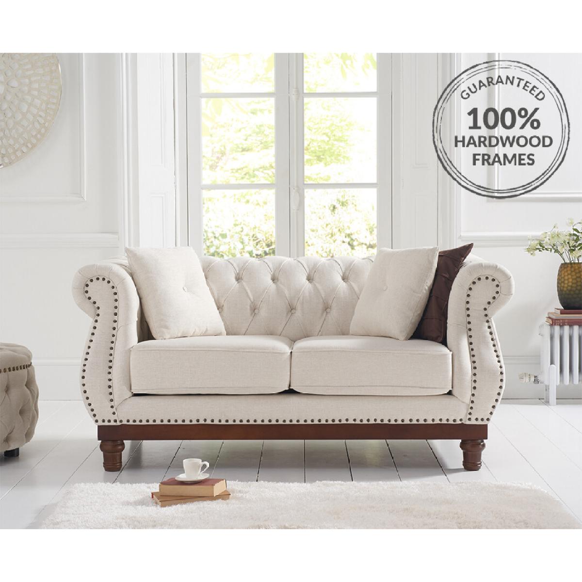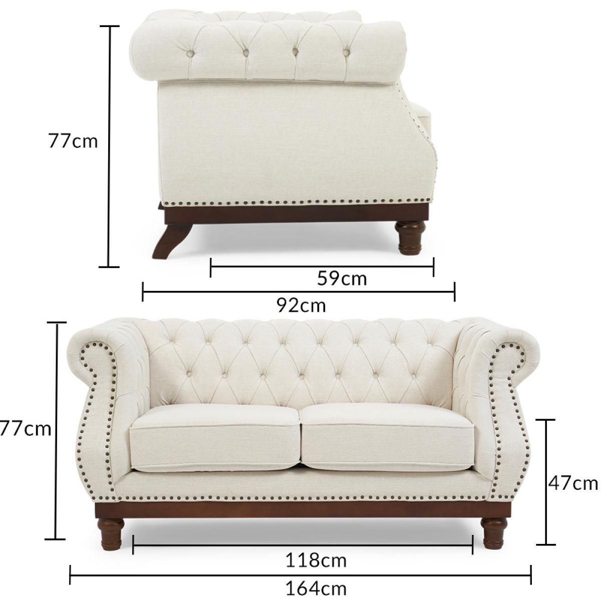 Harrow Chesterfield Ivory Linen Fabric 2 Seater Sofa