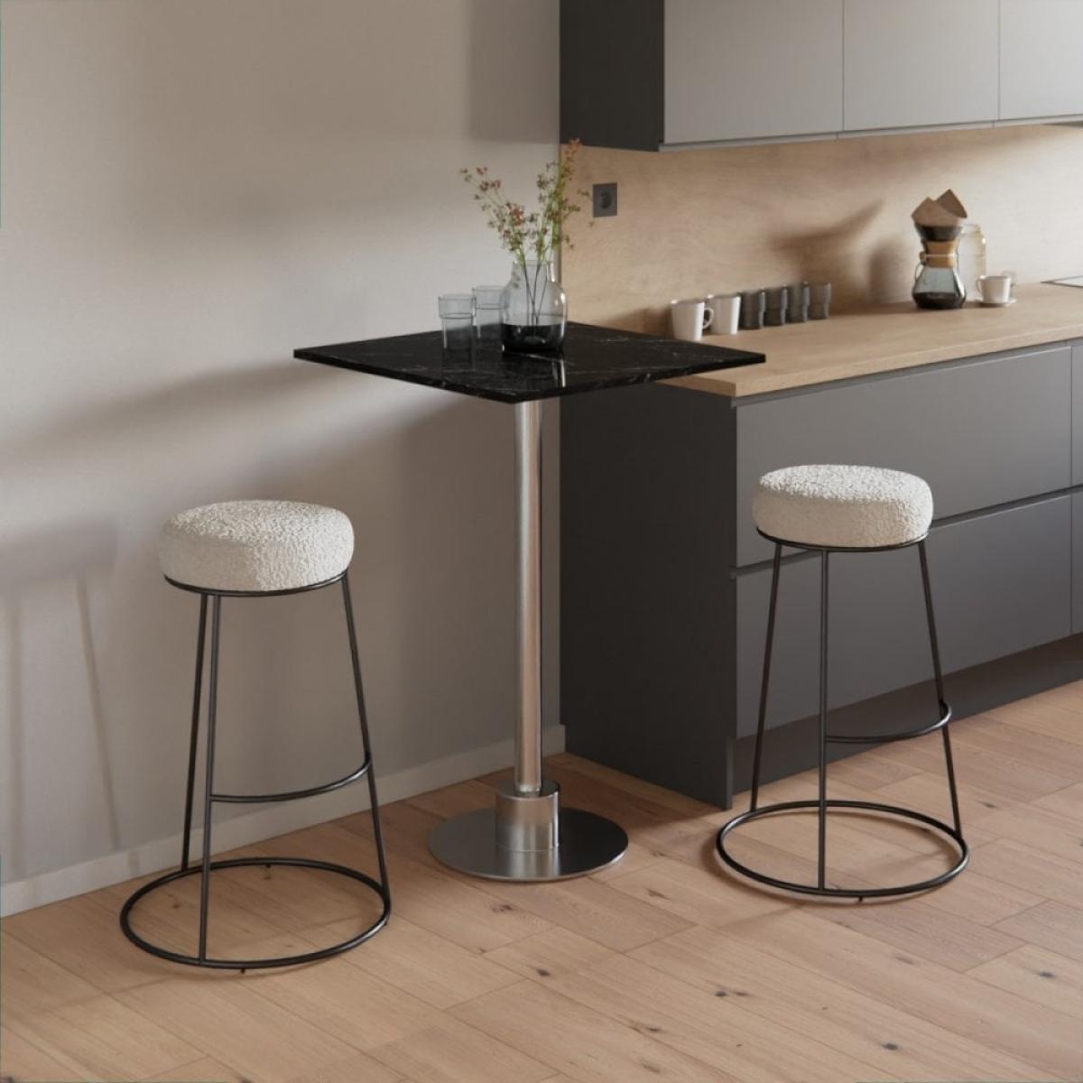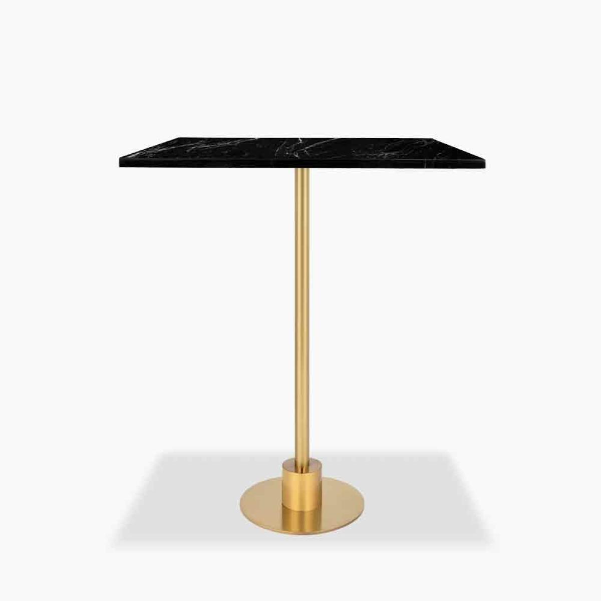 Accommodating 2 to 4 people, the Harrow bar table blends the natural grains of a square black marble tabletop with a timeless brass pillar stand, attached to a round flat metal base - creating a contrast that will instantly elevate any contemporary dining space. Available in two tabletop sizes and a tall stand option - with a variety of tops and metal finishes to choose from - our Harrow square bar table makes a stylish addition to any kitchen or bar while creating the ultimate dining experience when teamed with dining chairs and pendant lights of your choice. And if you buying for business? You can head to our Trade Team for more details. Please note: The table requires assembly, which includes drilling holes into the tabletop. Doing so is a simple process we have detailed below: The tabletop has a wooden underside that can be lined up with the base. Drill small guide holes into the wood and then drill in the inserts. Attach the tabletop to the base with the 10mm bolts we have provided. View The Harrow Range
