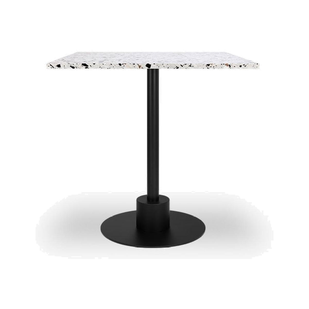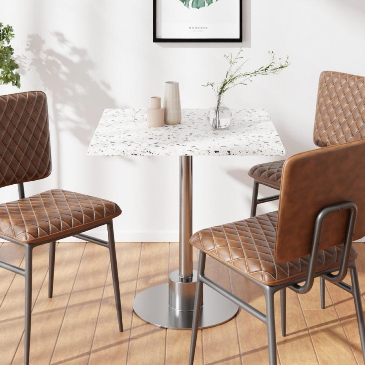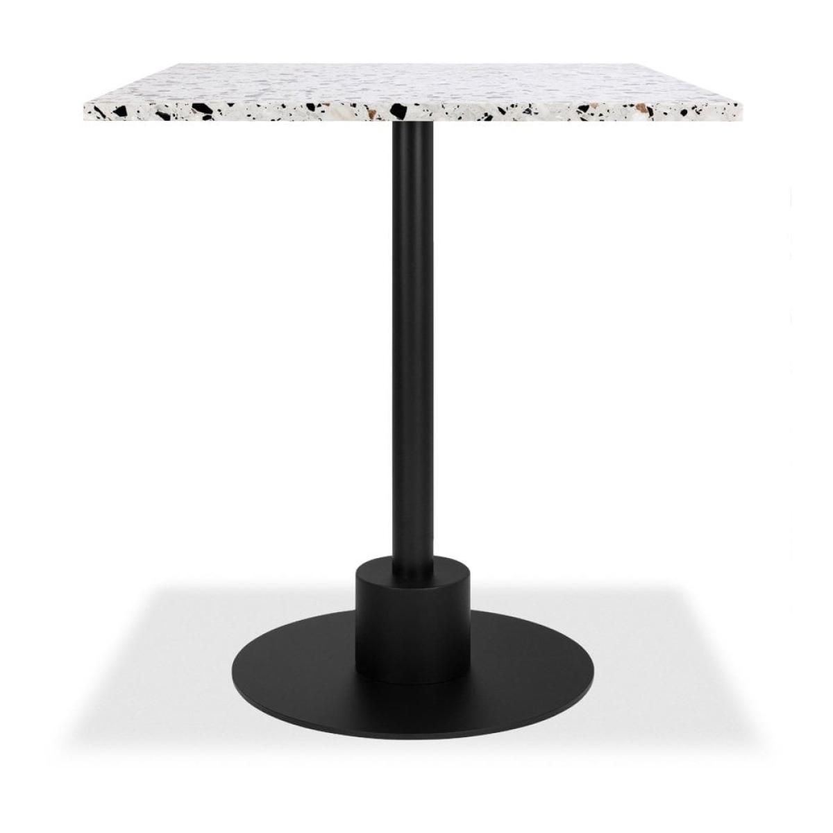 Meet the Harrow Art Deco cafe table. Accommodating 2 to 4 people, the Harrow blends the square white terrazzo tabletop with black pillar stand, attached to a round flat metal base - creating a contrast that will instantly elevate any contemporary dining space. Available in two tabletop sizes, our Harrow square cafe table makes a stylish addition to any kitchen or cafe while creating the ultimate dining experience when teamed with dining chairs and pendant lights of your choice. And if you buying for business? You can head to our Trade Team for more details. Please note: The table requires assembly, which includes drilling holes into the tabletop. Doing so is a simple process we have detailed below: The tabletop has a wooden underside that can be lined up with the base. Drill small guide holes into the wood and then drill in the inserts. Attach the tabletop to the base with the 10mm bolts we have provided. View The Harrow Range