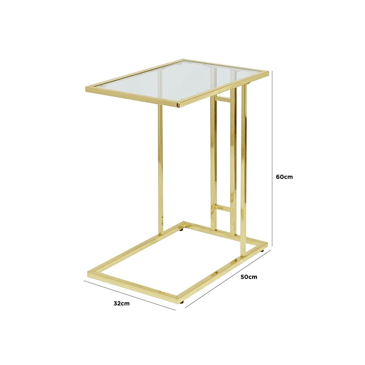Bring a modern twist into your living room with the Marcelo Stainless Steel Gold plated side table. This piece has been crafted with a simple, yet beautiful rectangular design. This piece is then finished off with a clear glass table top, perfect for any living room.