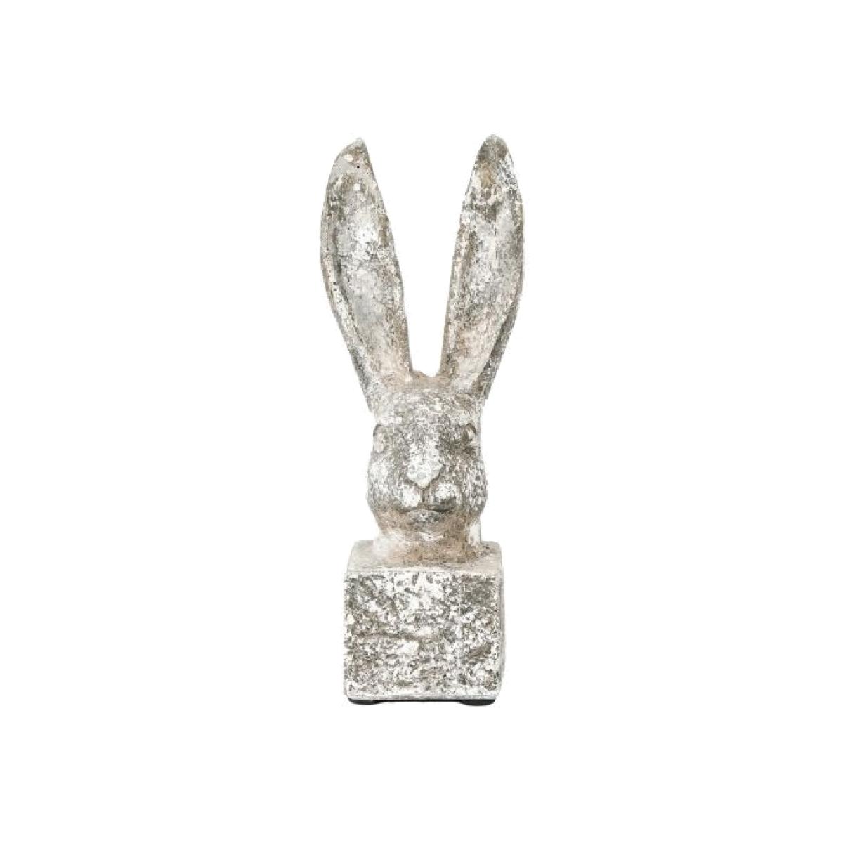Bring a little charm and character to your room or patio with the detailed hare head sculpture in distressed white & grey cement. Coordinating smaller sculpture available. Suitable for outdoors Colour - White Material - Cement Size - Small Dimensions - W 90 x D 90 x H 240mm