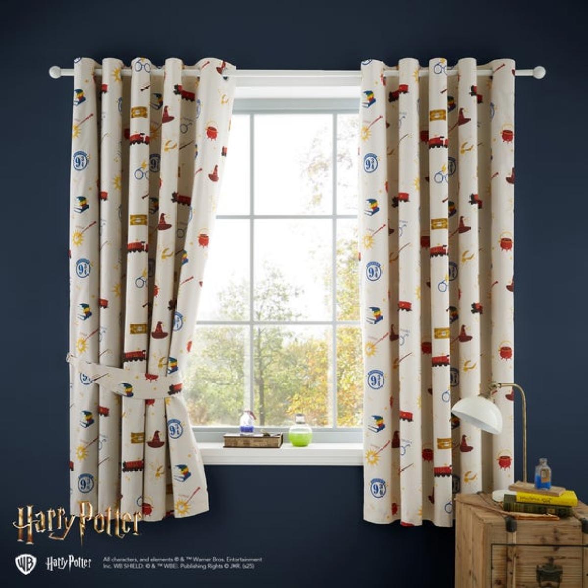 * Blackout lined * Harry Potter design * Coordinating bedding available Transform their room into a magical retreat with these Harry Potter Blackout Curtains. Featuring an enchanting print inspired by the Wizarding World, they’re perfect for young witches and wizards. Made from a soft and durable polycotton blend, they’re blackout lined to help block out light for a restful night’s sleep. Each pair comes with matching tiebacks to keep things neat during the day. Easy to hang and designed for everyday use. A spellbinding finishing touch to any Harry Potter fan’s bedroom.