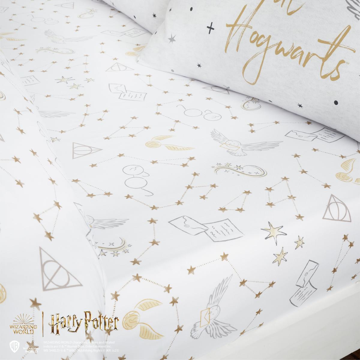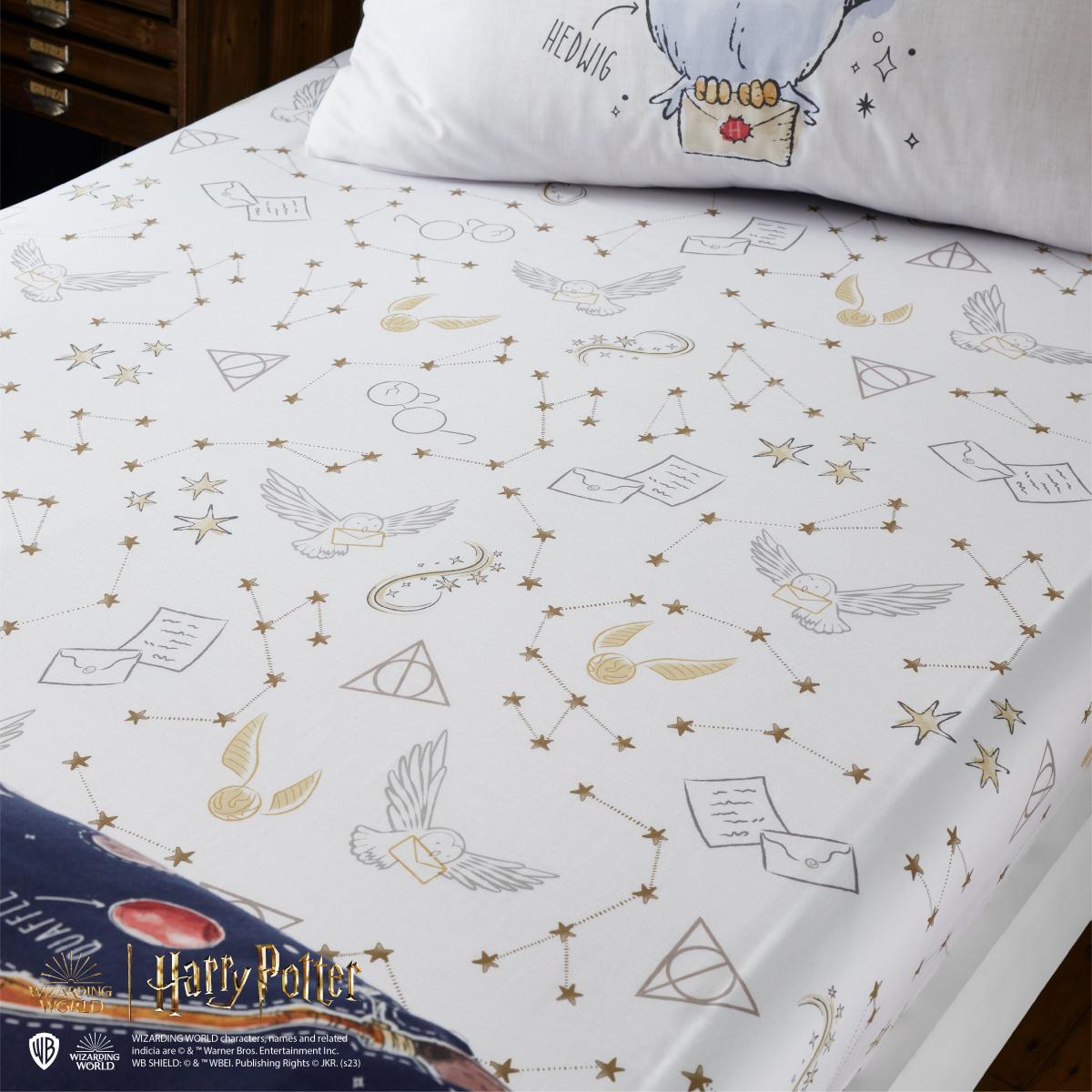 * Made from soft polycotton* Harry Potter print* Machine washable* Coordinating bedding available to purchase separately. Calling at all the Harry Potter fans, add some magic and fun to your bedding with this Hogwarts fitted sheet. It features a fun Harry Potter scattered print all over. Crafted from a soft blend of polyester and cotton material, this set is easy to care for and is fully machine washable. Good things come to those who coordinate, so why not pair this fitted sheet with the matching bedding sets available to purchase separately? This product is OEKO-TEX MADE IN GREEN certified, meaning it was produced in OEKO-TEX S Te P certified factories - verifying environmental, social, and chemical standards in the facility. It has also been certified to OEKO-TEX STANDARD 100, the original safety standard for everyday confidence. To offer full visibility, the production stages throughout the supply chain can be traced.