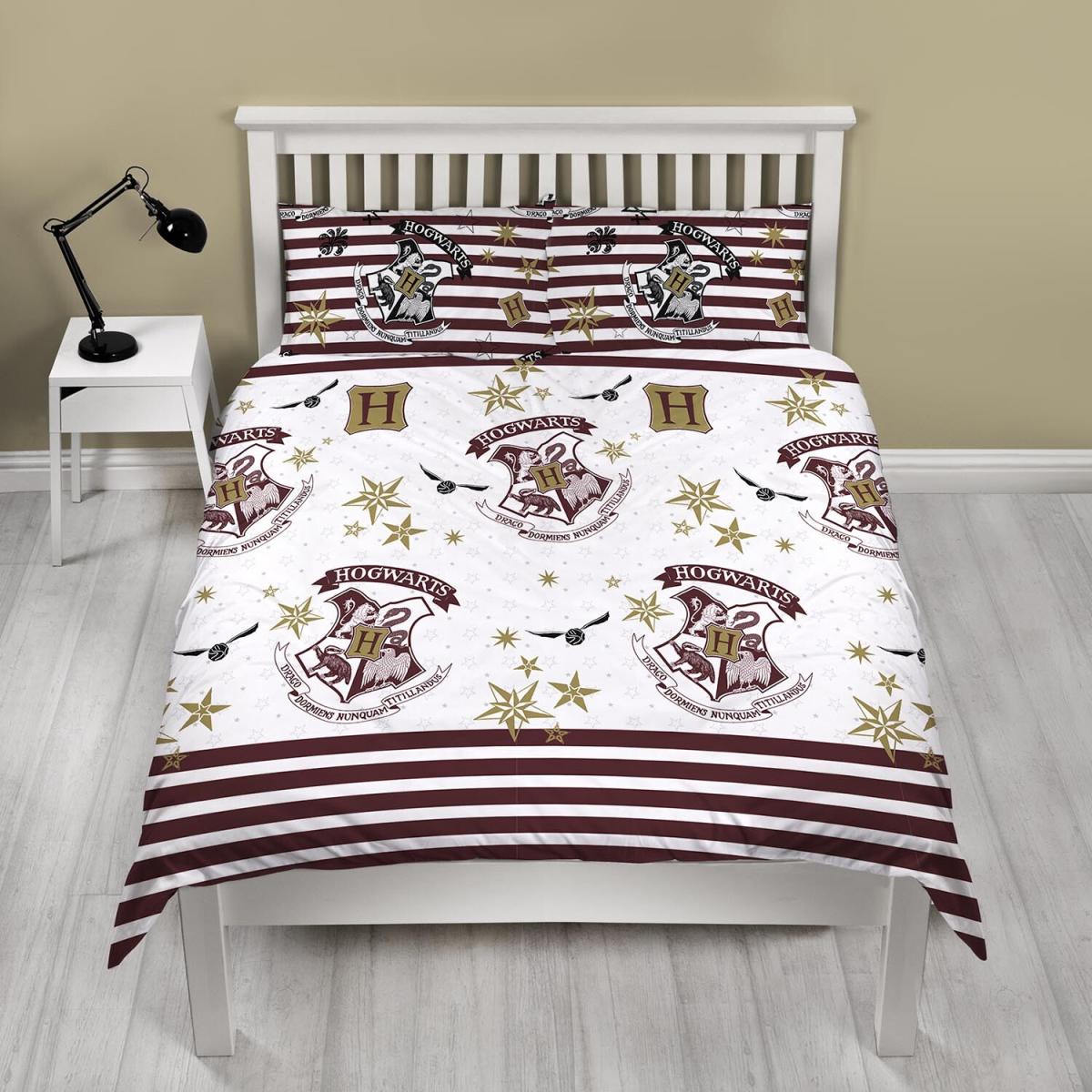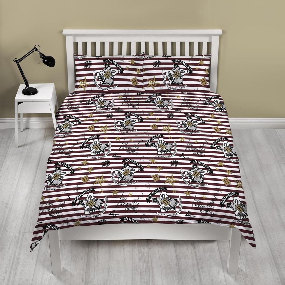 The perfect bedding set for any practising witch or wizard, the Harry Potter Muggles Duvet Cover and Pillowcase Set featuring two unique patterns in a reversible design. Displaying the famous wizarding school's logo atop a classic stripe pattern, this duvet set will bring a touch of magic to any bedroom.