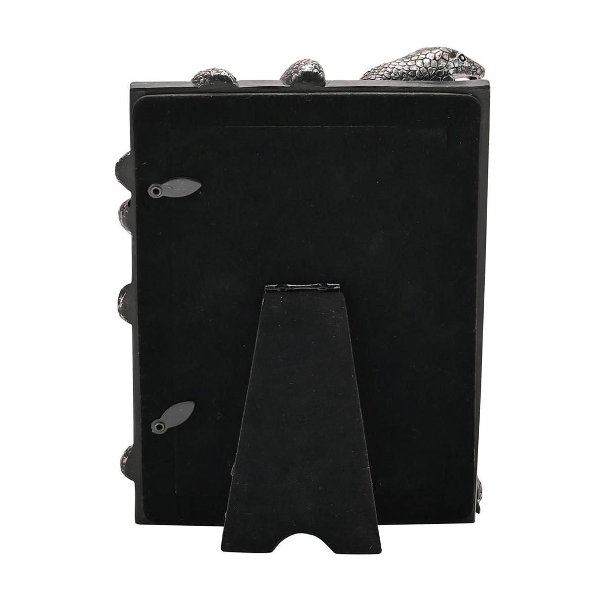 * Haunting Nagini Detailing* Crafted from Durable Resin* Gorgeous Glossy Finish* Self-Standing Frame Step into the darker side of the wizarding world with this spellbinding Nagini Photo Frame. Crafted from durable resin with a glossy finish, each intricate detail shines - capturing the sinister elegance of Voldemort’s loyal companion. This self-standing frame, designed for 4” x 6” portraits, offers a hauntingly beautiful display for your most memorable moments.