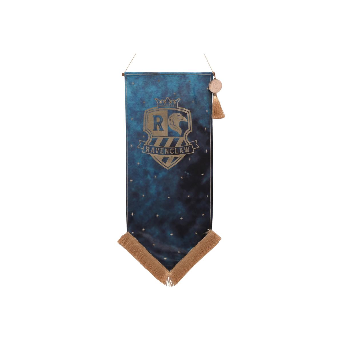 * " Ravenclaw" Motif* Made from High-Quality Fabric* Gold Edging & Trim Detailing* Includes Attached Thread Hanger Celebrate your Ravenclaw spirit with this blue fabric banner, complete with gold edging and the “Ravenclaw” logo. With matching trim detailing, a gold tassel, and a Hogwarts stamp, it’s designed for effortless hanging to add wisdom-inspired style to your space.