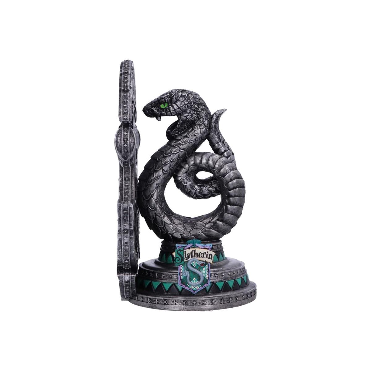 Magic is waiting for you with this officially licensed Harry Potter Slytherin bookend. Slytherin is one of the four houses at Hogwarts, whose members traits are cunning, ambition and pride. The symbolic animal of the house is a snake, which can be seen facing the Hogwarts crest as the main feature of the bookend, along with the house's emblem and colours of green and silver. Cast in the finest resin before being expertly hand-painted, this collectible bookend is the perfect addition to any wizarding collection and can be enjoyed by Witches, Wizards, and Muggles alike!