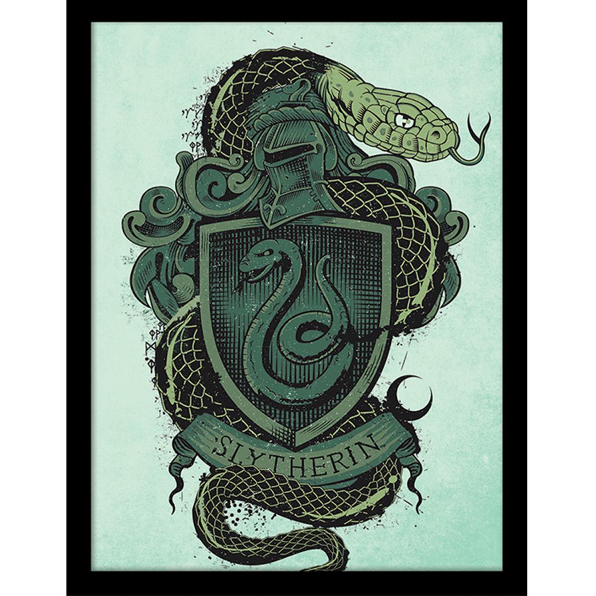 I love this snappy print for adding a touch of character to a variety of interiors. It works especially well in spaces with a modern or eclectic vibe, where it can serve as a statement piece or a conversation starter. To really make it pop, consider framing it with a sleek black or matching green border and hanging it at eye level. It pairs nicely with neutral walls to keep the focus on the artwork, but it can also add an interesting contrast in more colourful rooms. Practical styling tips include grouping it with other Harry Potter-themed items or placing it in a dedicated display shelf for a fun, personalised collection.