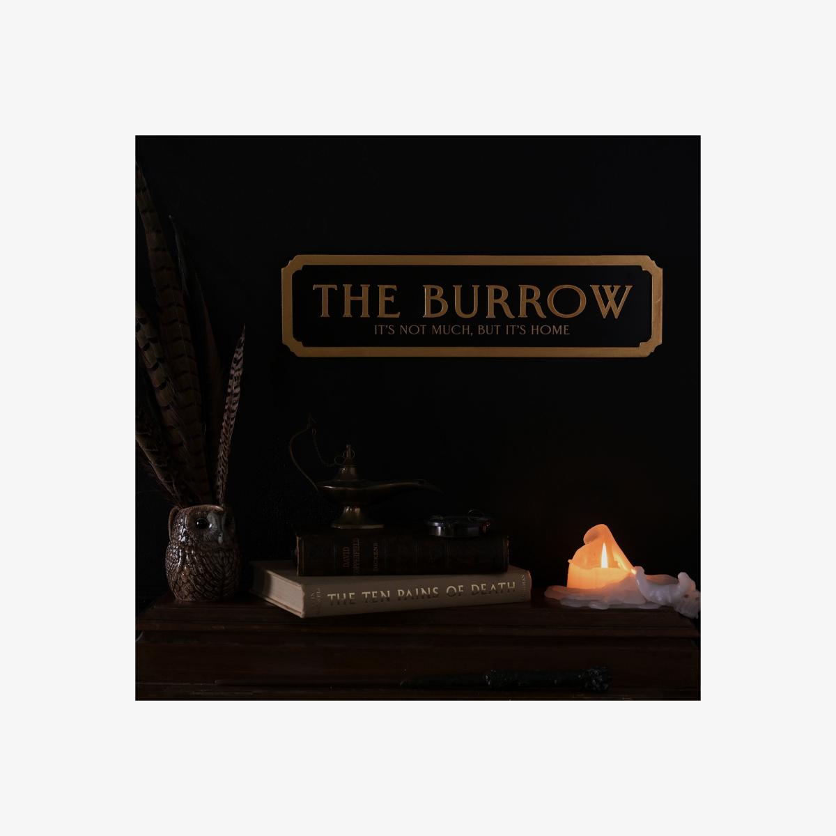 * " The Burrow" Motif* Made from Durable Wood* Metallic Effect Finish* Included Wall Hook - Easy Display Perfect for Harry Potter fans, this wall plaque showcases a 3D gold ‘The Burrow’ title, complete with further ‘It’s Not Much, But It’s Home’ wording and a metallic effect finish. It is completed by a gold wooden border and a hook for wall display.